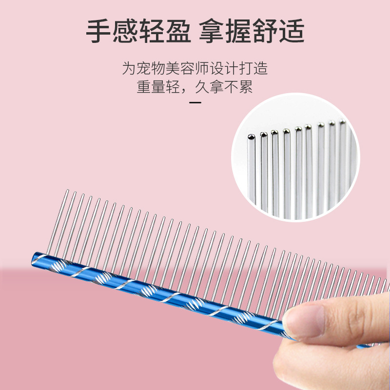 애완 동물 빗 금속 스트레이트 빗 개 빗 스테인레스 스틸 뷰티 빗 스틸 빗 애완 동물 브러시 1cm스토어 가기