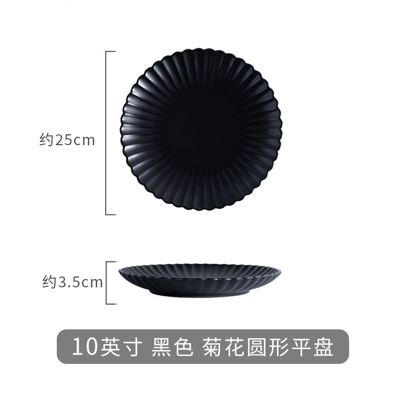 • 국화 블랙 10 인치 라운드 플랫 플레이트