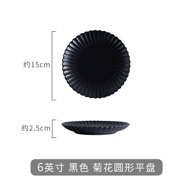 • 국화 블랙 6 인치 라운드 플랫 플레이트 소형