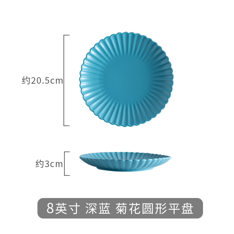 • 국화 블루 8 인치 라운드 플랫 플레이트