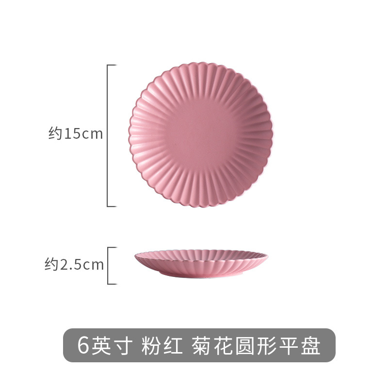 • 국화 핑크 6 인치 라운드 플랫 플레이트 소형