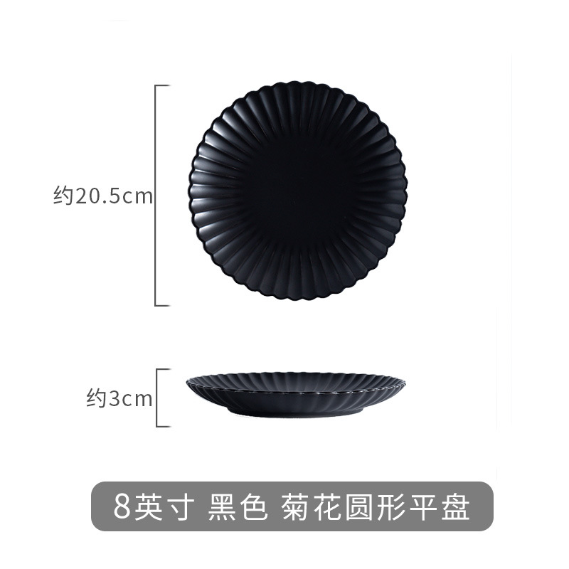 • 국화 블랙 8 인치 라운드 플랫 플레이트