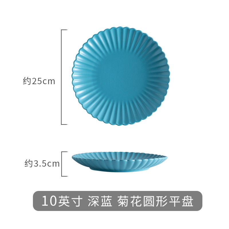• 국화 블루 10 인치 라운드 플랫 플레이트