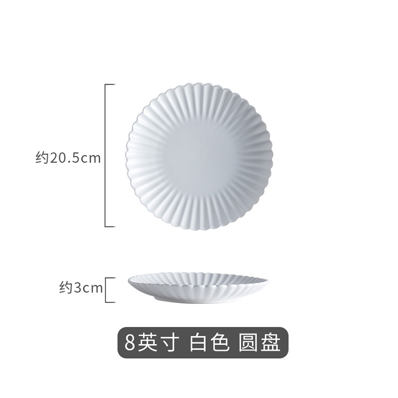 • 국화 화이트 8 인치 라운드 플랫 플레이트