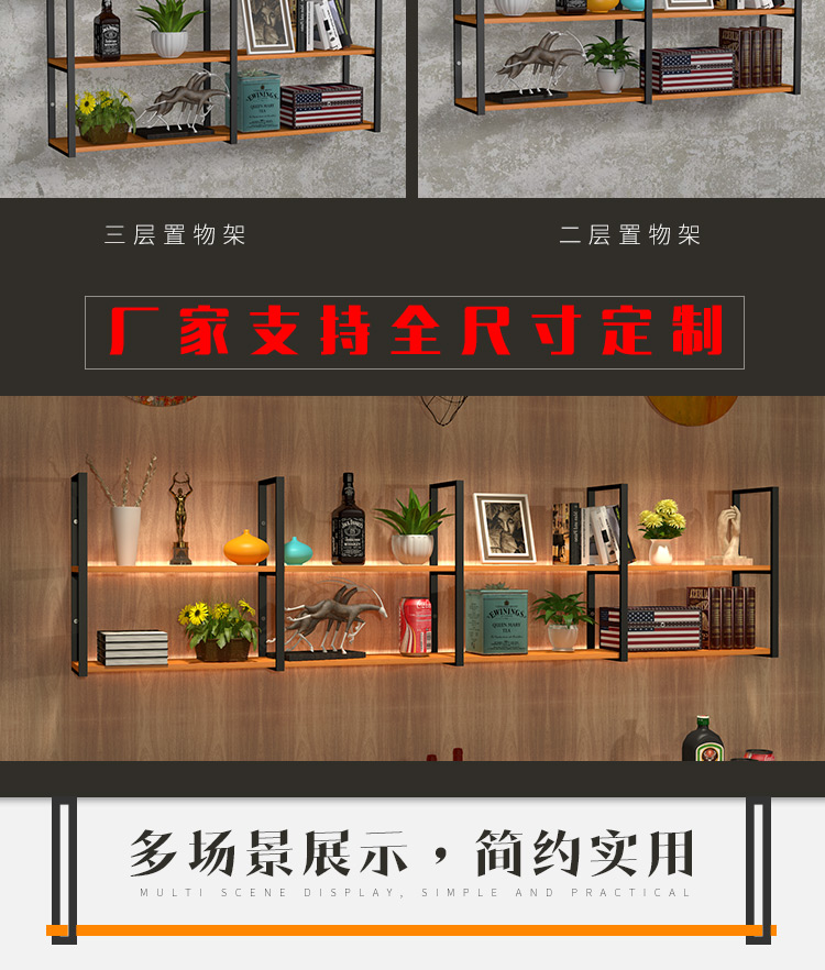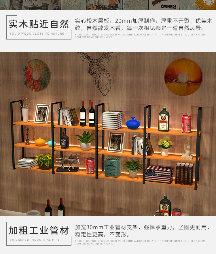 벽 선반 단단한 나무 선반 파티션 벽 다층 사무실 책장 거실 장식 선반 벽 랙