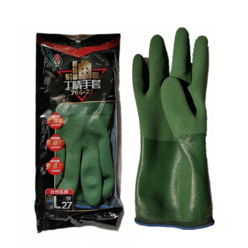 正品春蕾766-27手套绿色强力耐油化工防滑丁腈防水耐磨劳保胶手套