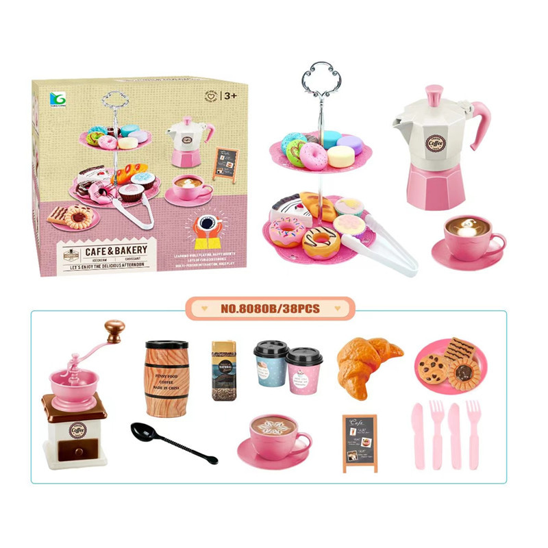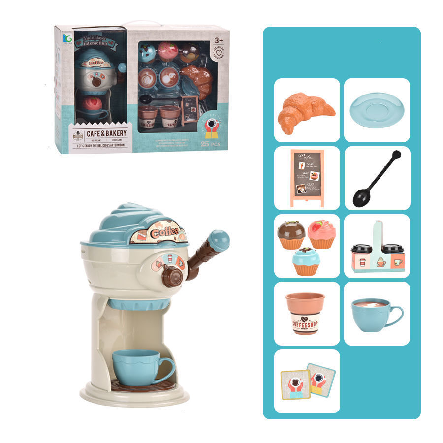 크로스 국경 신제품 어린이 놀이 집 장난감 시뮬레이션 커피 머신 딤섬 오후 차 장난감 세트 DIY 장난감