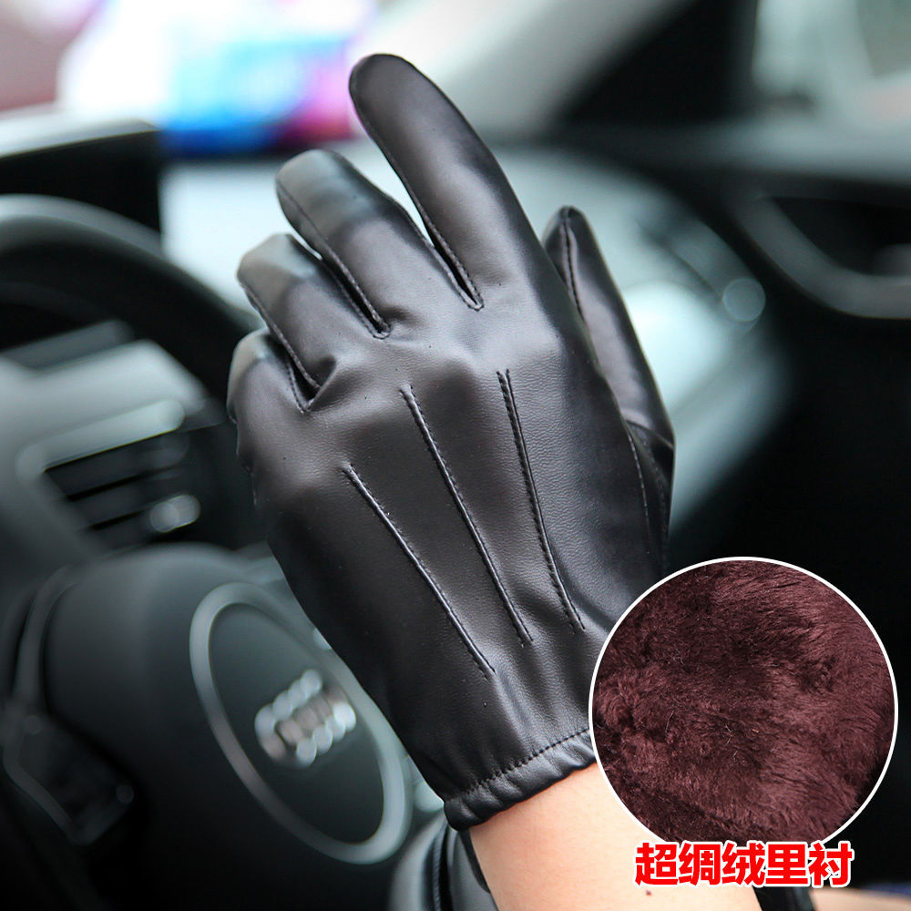 가을과 겨울 새로운 PU 가죽 얇은 장갑 남자의 겨울 기모 따뜻한 운전 터치 스크린 장갑 한국 장갑 도매