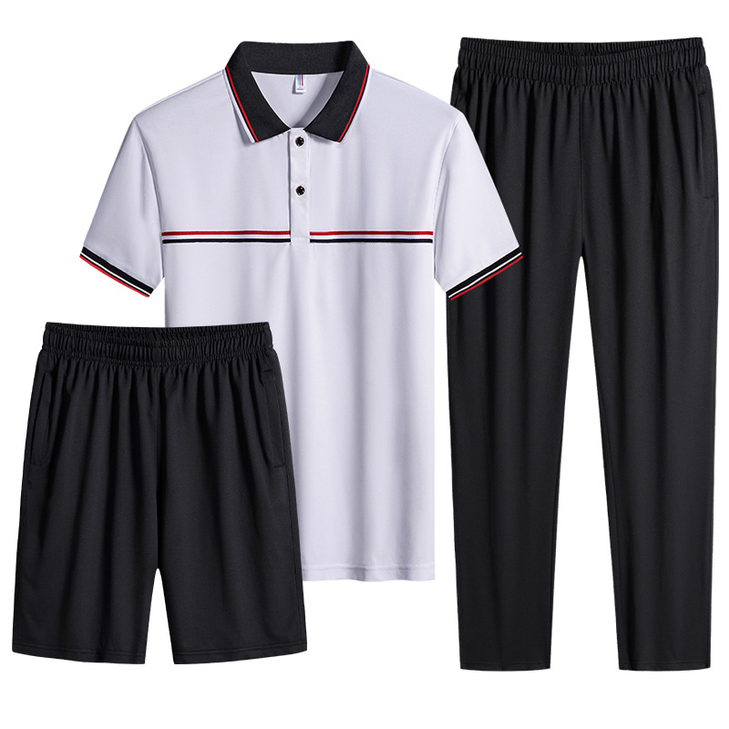 무료 배송 여름 착용 안티 아이스 실크 스포츠 세트 남성 캐주얼 POLO 반팔 세트 중년 및 노인 아빠 108