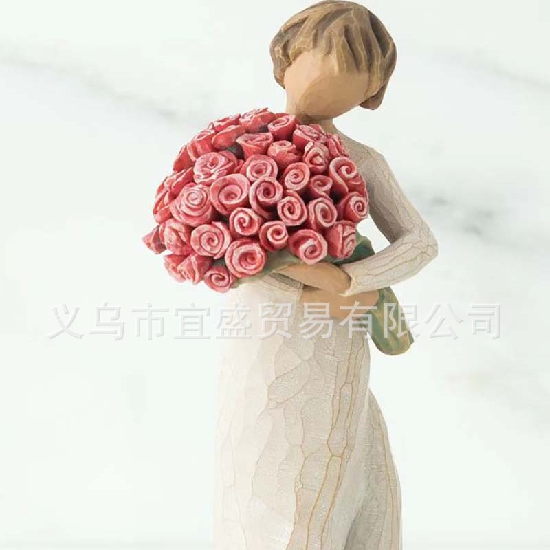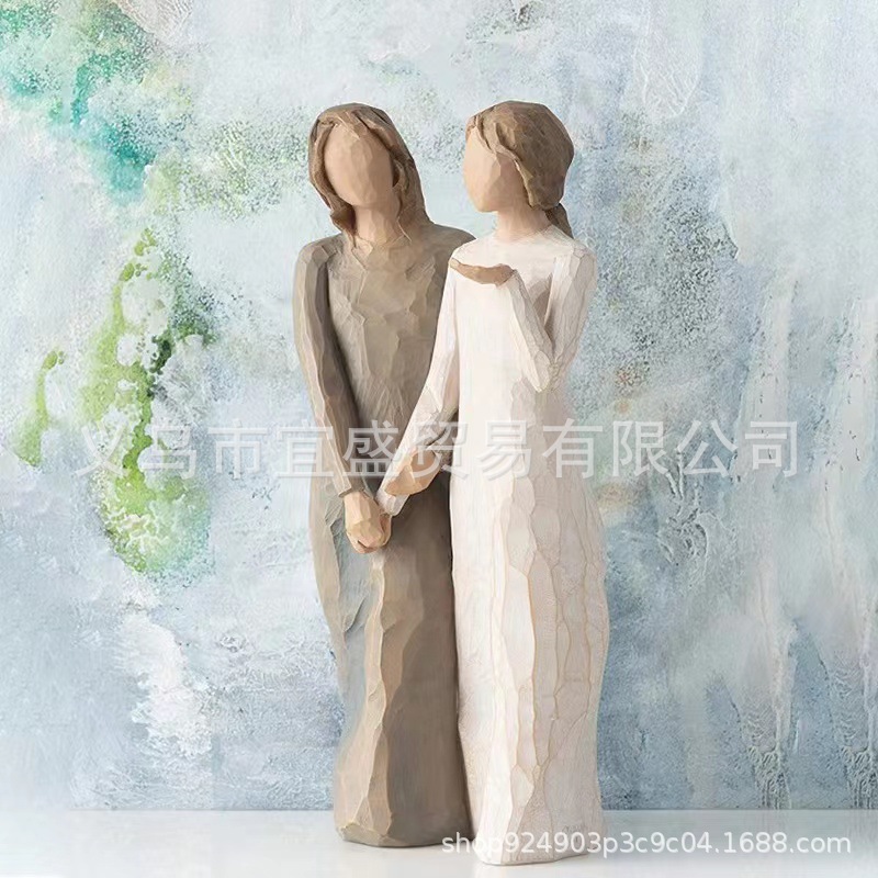 국경 간 새로운 발렌타인 데이 모조 나무 조각 커플 연인 친밀한 장식품 수지 공예 홈 장식