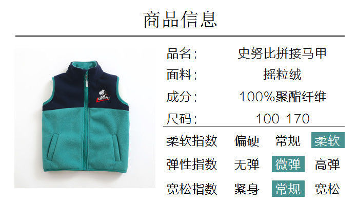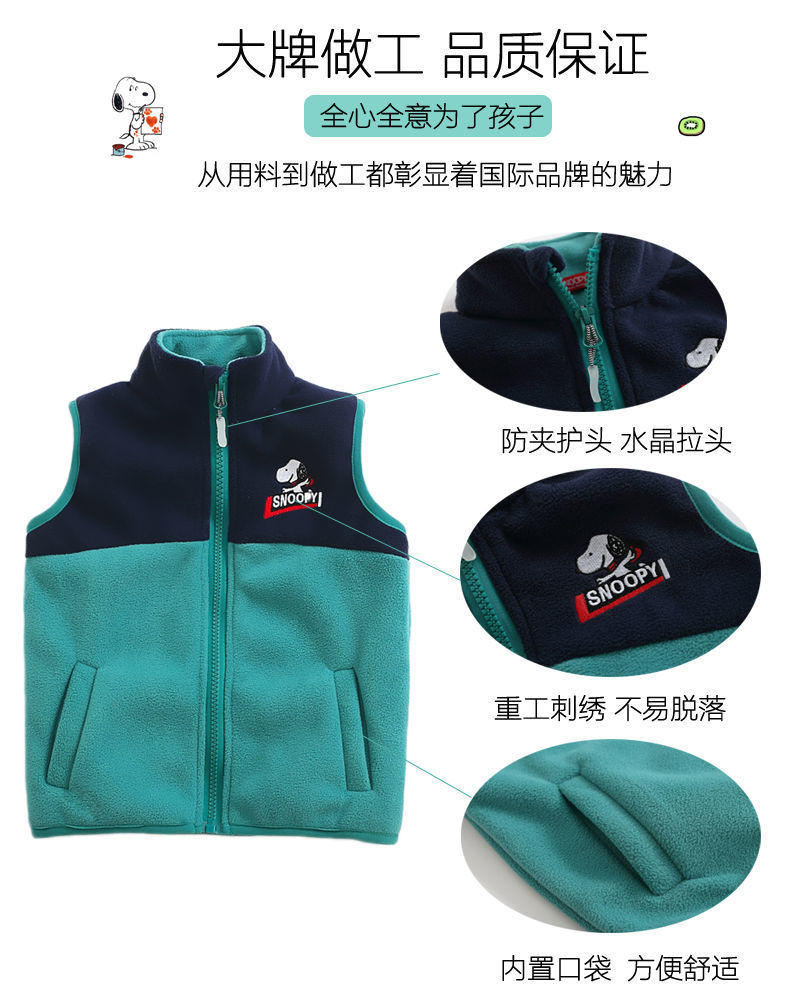 소년과 소녀를위한 스누피 어린이 조끼 봄과 가을 양털 양털스토어 가기