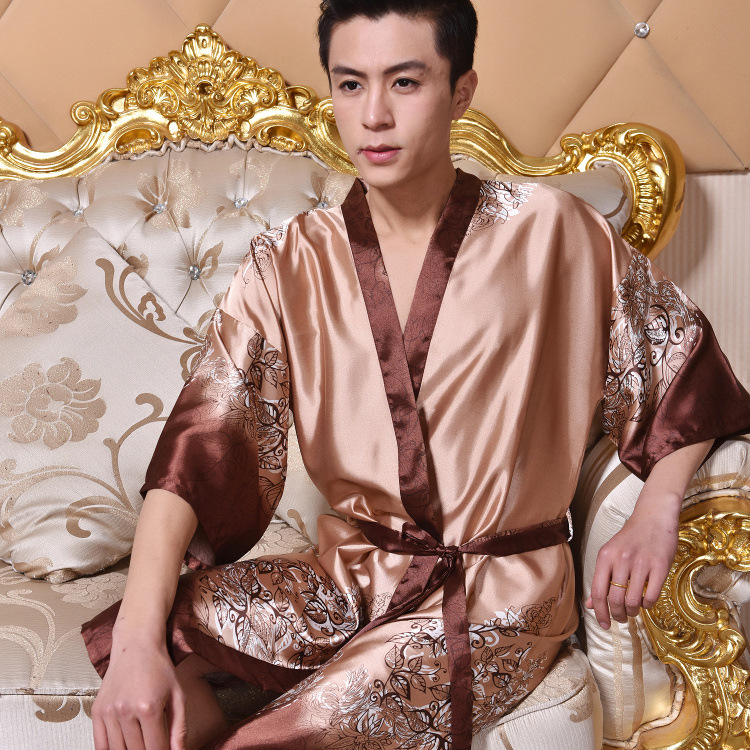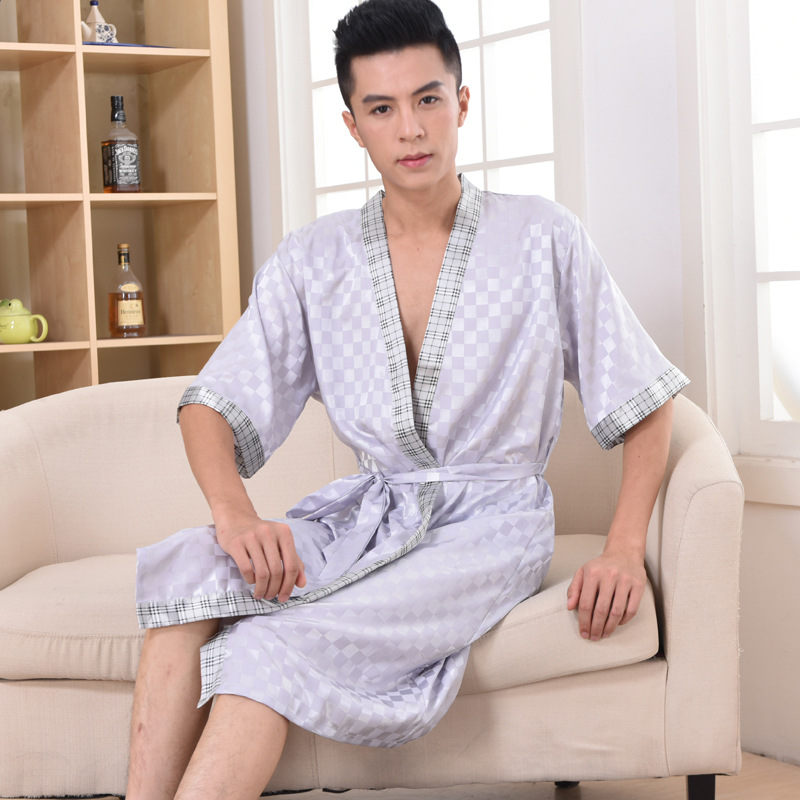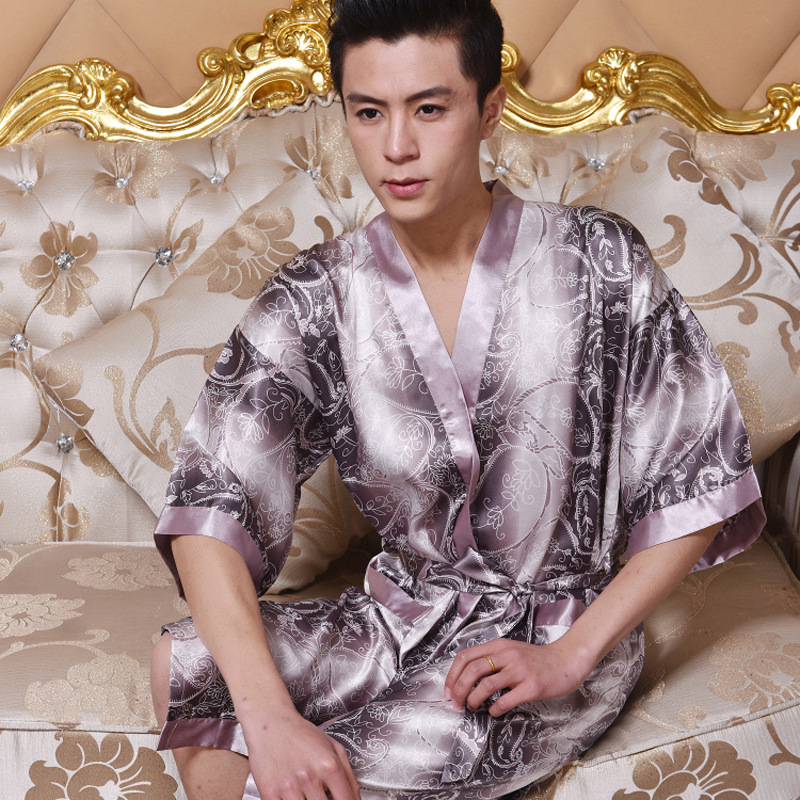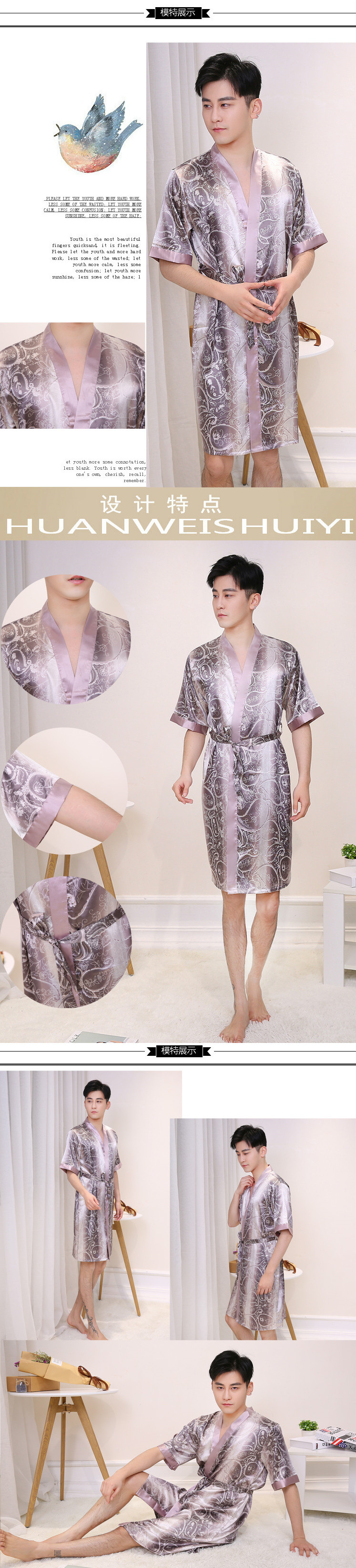 공장 도매 여름 스트레치 실크 반팔 심플 천연 잠옷 남성용 얇은 가정용 옷스토어 가기