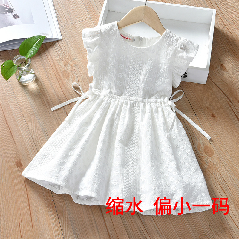 아기 유행 흰색 치마 여름 드레스 2025 새로운 어린이 단색 수 놓은 민소매 조끼 드레스 소녀 드레스 여름스토어 가기