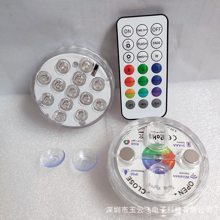 水族LED潜水旋钮灯13LED遥控彩色水底灯高亮水族生活装饰水下灯具