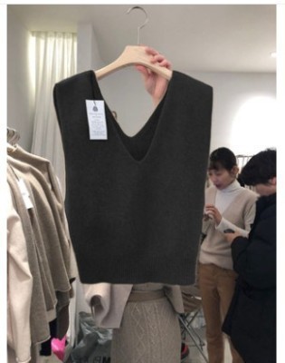 가을과 겨울 한국 스타일 느슨한 더블 V-넥 울 조끼 여자의 짧은 간단한 캐시미어 조끼 플러스 사이즈 니트 조끼스토어 가기