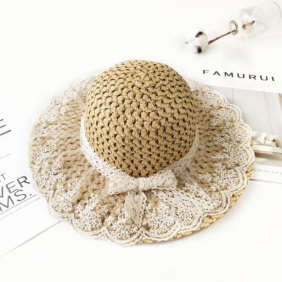 새로운 여름 어린 소녀 어린이 밀짚 모자 도매 활 큰 따라 태양 모자 해변 자외선 차단제 차양 모자 조수