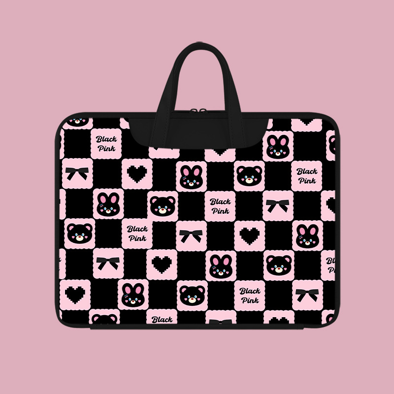 • 체커보드 블랙 핑크 토끼 머리 [여행가방과 함께 사용 가능]