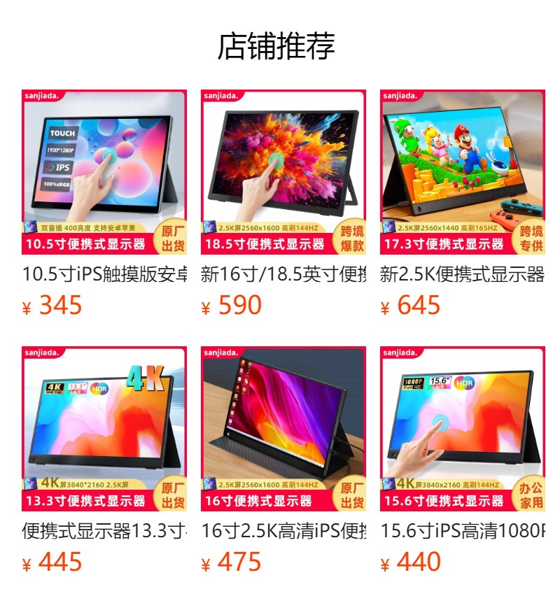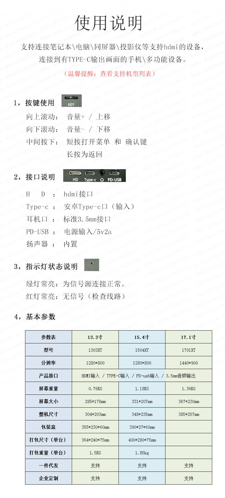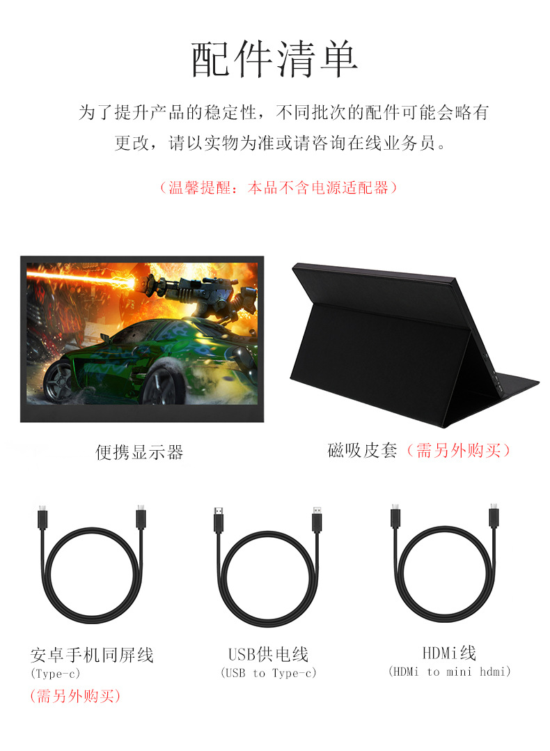 13/15/ 17inch 모니터 HDMI+TYPE-C 컴퓨터 확장 SWITCH 휴대폰 동시 화면 LCD 휴대용스토어 가기