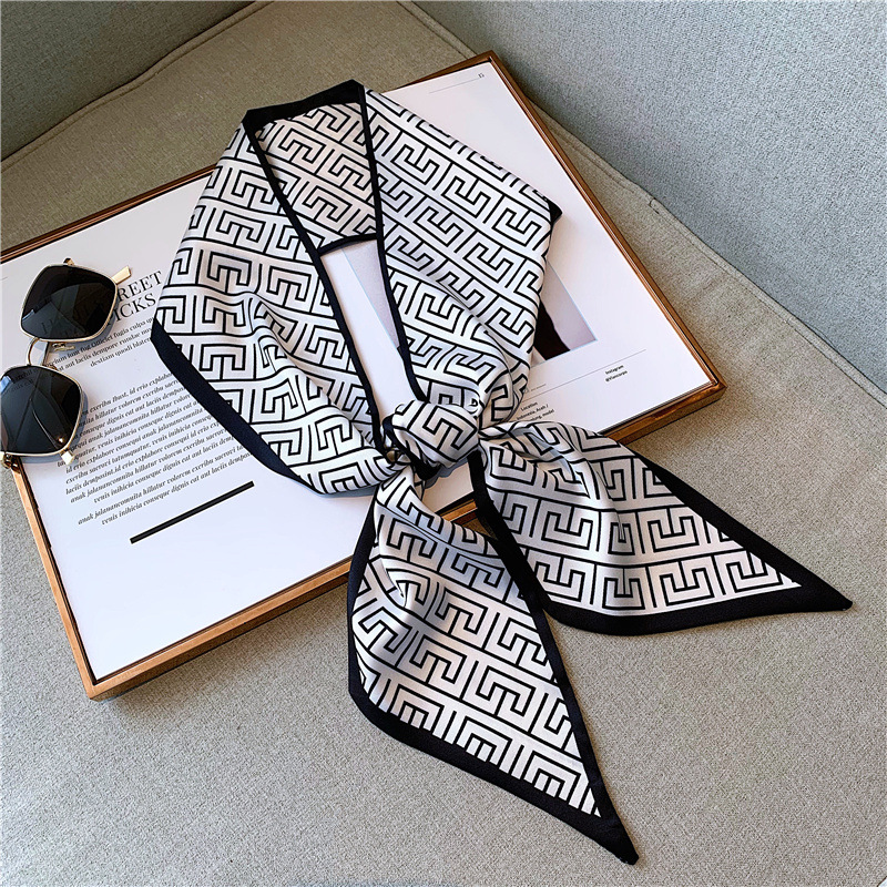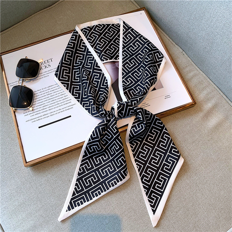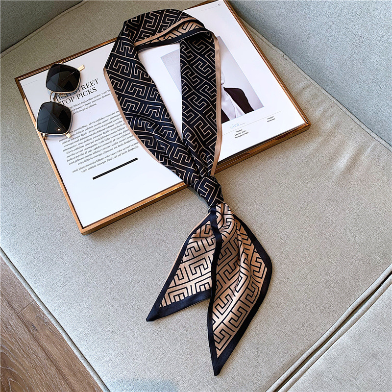 블랙 작은 긴 좁은 실크 스카프 여성의 모든 일치 봄과 가을 스카프 장식 긴 얇은 스카프 스퀘어 스카프 한국 스카프스토어 가기
