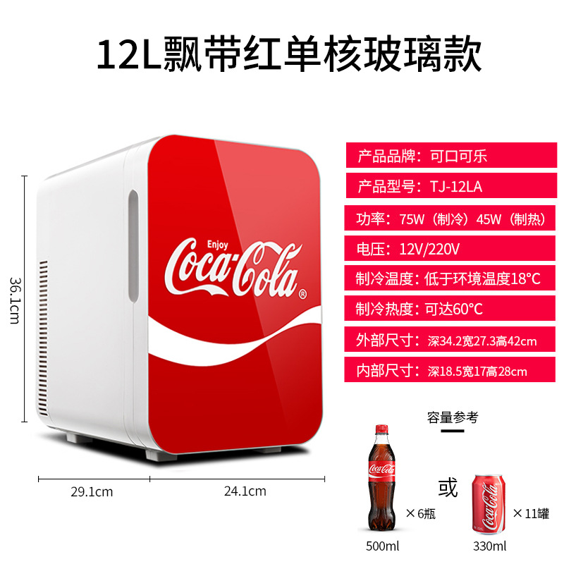 코카콜라 국경 수출 자동차 냉장고 12L 미니 냉장고 작은 가정 기숙사 전자 냉각 및 난방 상자