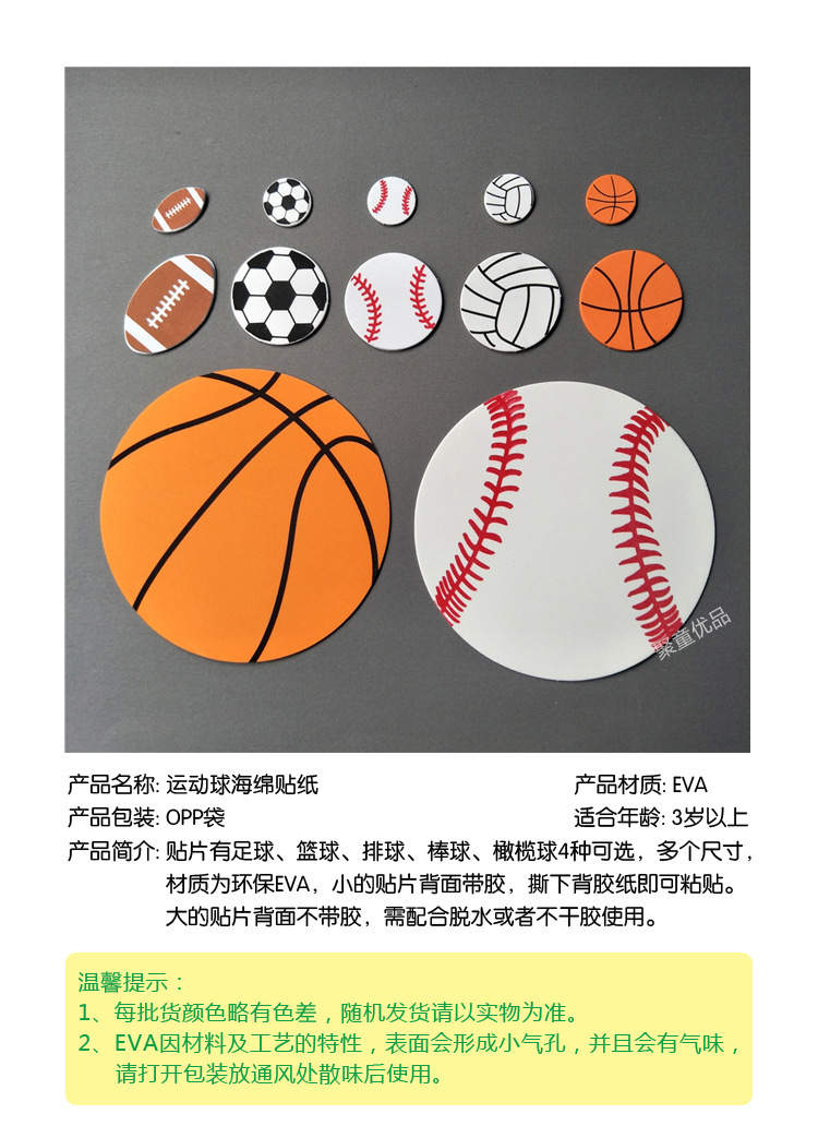 다양한 스포츠 공 스폰지 스티커 축구 농구 어린이 크리에이티브 페이스트 EVA 소재 라운드 스폰지 스티커