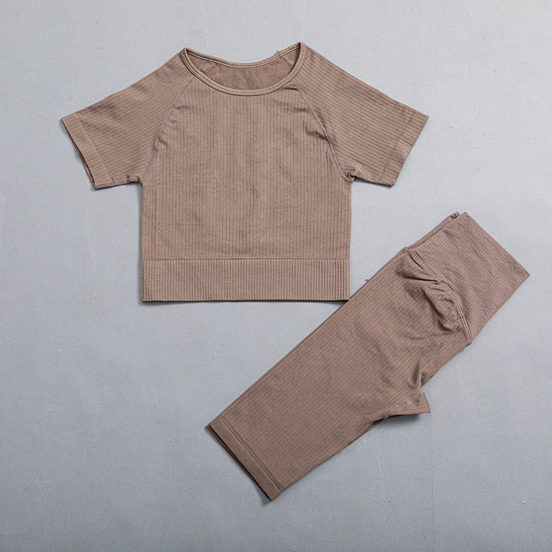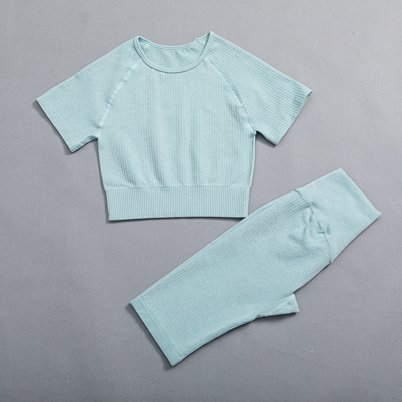 9 색 가을/겨울 유럽과 미국 폭발 원활한 스레드 스포츠 속옷 피트니스 짧은 소매 반바지 하이 웨이스트 꽉 요가 세트