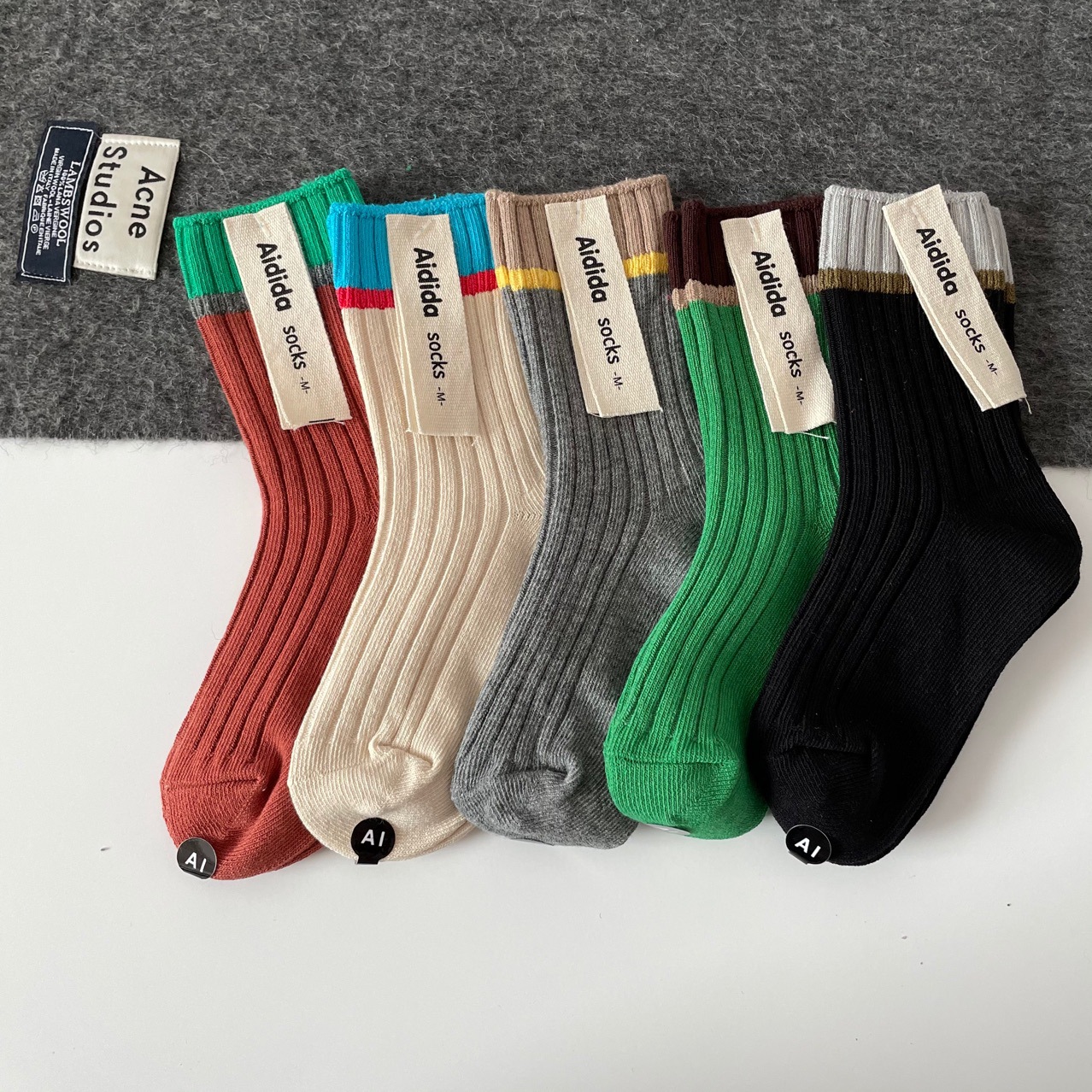 어린이 양말 빗질면 이중 바늘 패션 양말 하이 양말 단색 제조업체는 새로운 아기 및 어린이를 공급합니다스토어 가기
