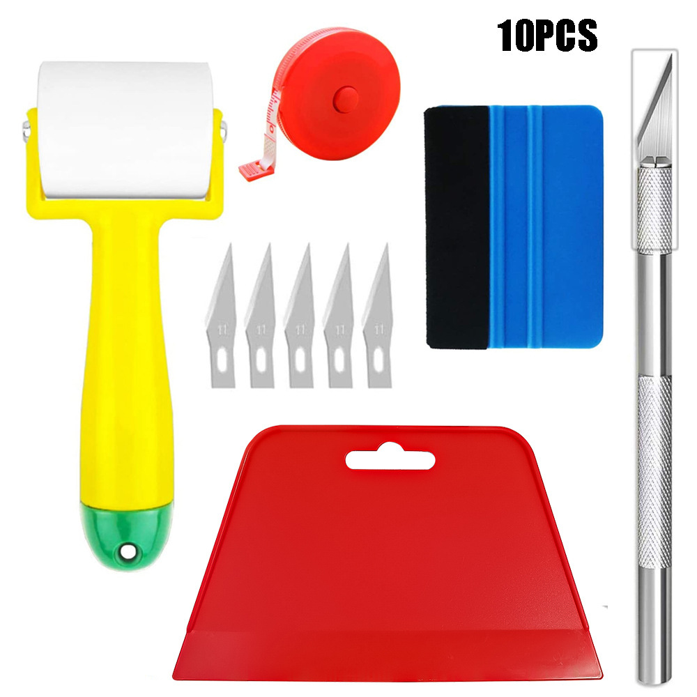 10件套双面刮板贴膜工具套件 带滚轴、硬刮刀、卷尺、工艺刀