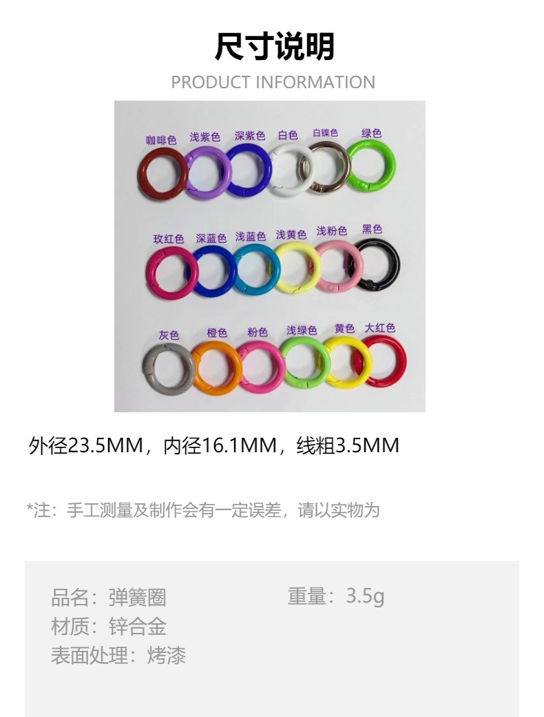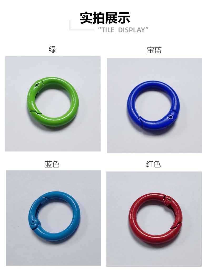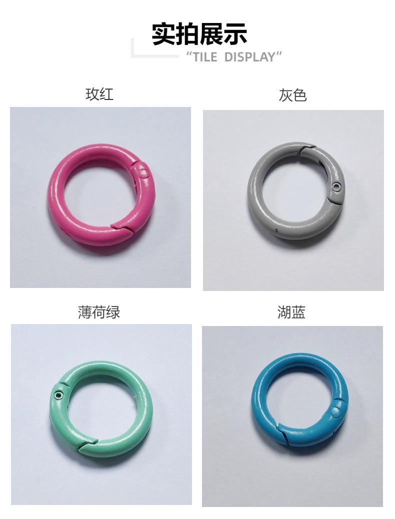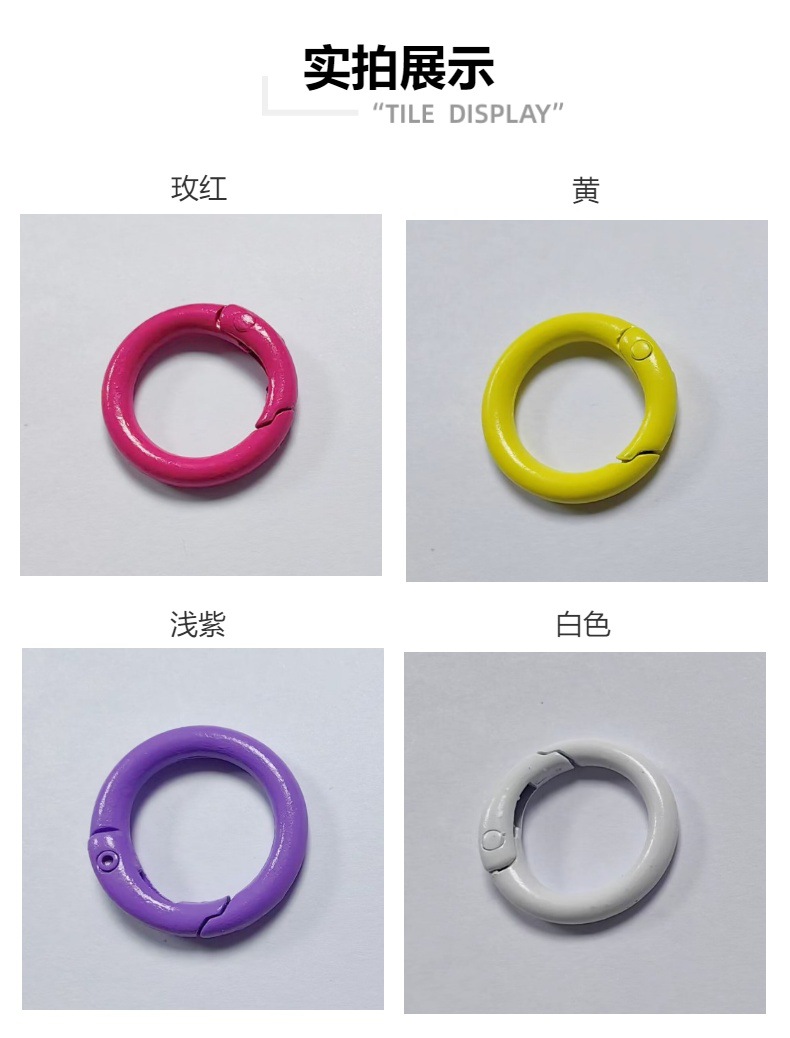便携式彩色烤漆弹簧圈金属开口弹簧扣来啦!精选优质金属材质,坚固耐用,让您的耳机、钥匙不再丢失。东南亚风格设计,时尚又独特,适合各种场合送礼,无论是情人节、教师节还是任何特别的时刻,都是绝佳选择。无论是作为商务礼品或个人使用,都是一个细致用心的好选择,赶快把它加入购物车吧!时尚彩色金属开口挂扣,完美搭配耳机钥匙,轻松防丢,送礼自用皆宜,快来选购吧!