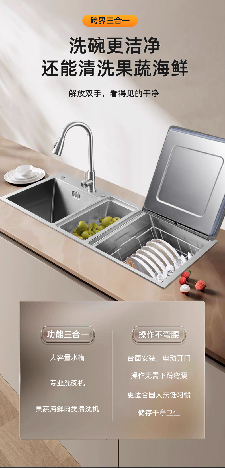 재고 가정용 주방 초음파 싱크대 식기세척기 스마트 대용량 일체형 스테인레스 스틸 식기세척기스토어 가기