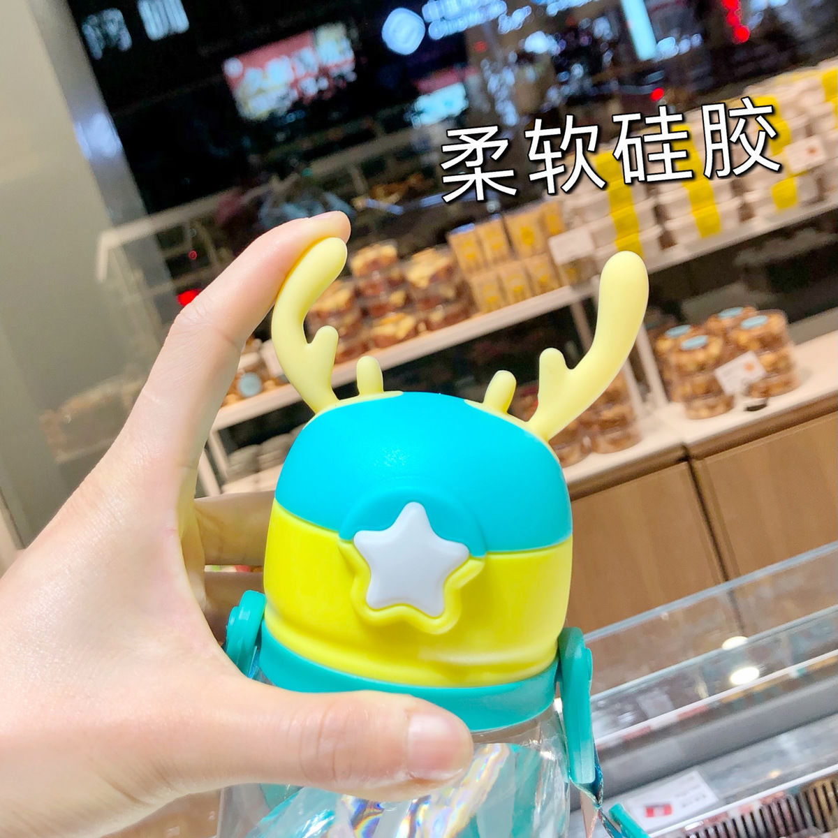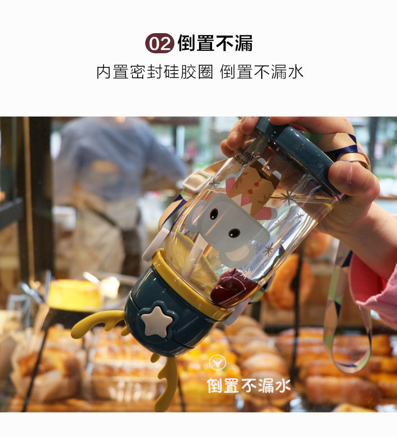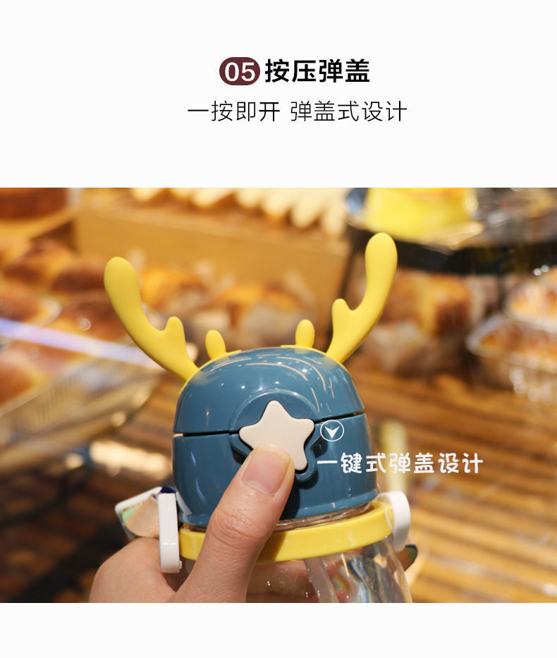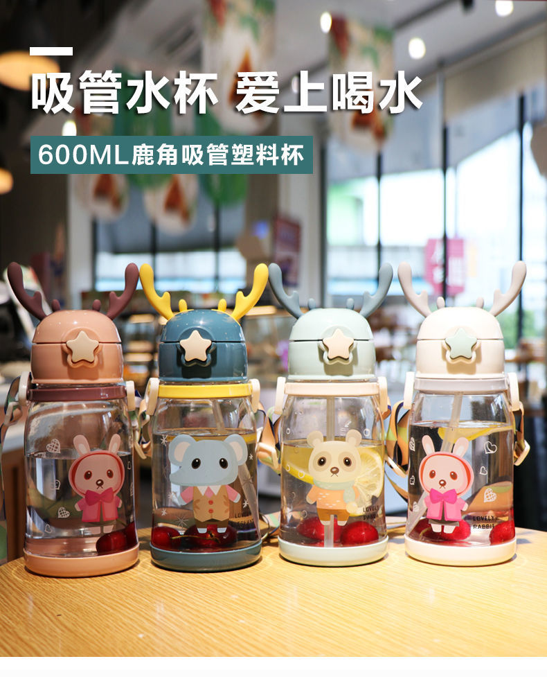 소년과 소녀를위한 어린이 흡입 컵 마시는 컵 아기 누출 방지 초등학생을위한 귀여운 뿔 주전자 낙하 방지 휴대용 물 컵스토어 가기