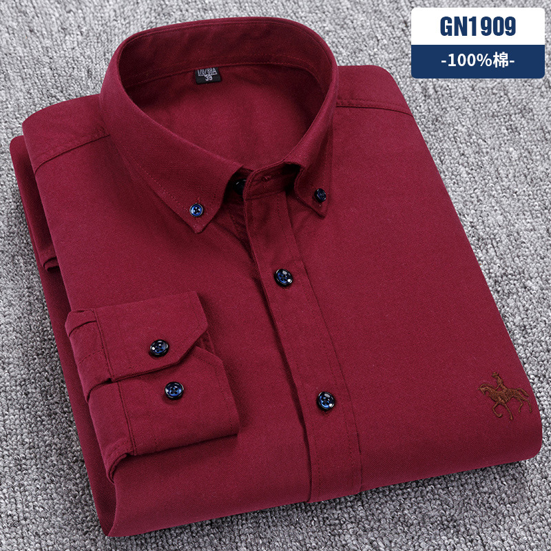 퓨어 코튼 남성용 그린 및 중년 긴팔 셔츠 주름 방지 퓨어 코튼 셔츠 비즈니스 캐주얼 Ma Biao 무다림질 베이스 셔츠 봄