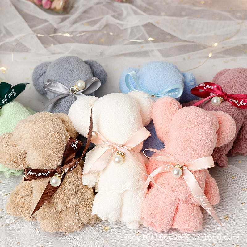 도매 산호 벨벳 곰 모양 수건 반환 선물 동반자 선물 어머니 음모 결혼식 생일 사탕 가게