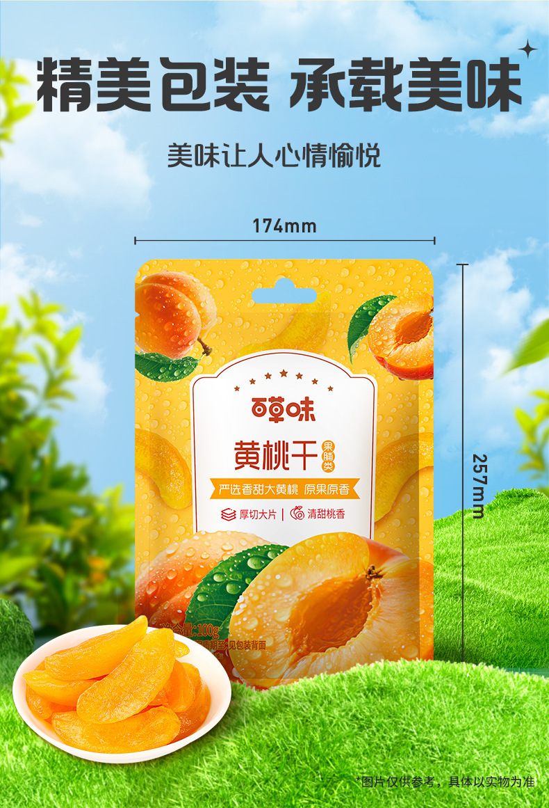 허브 맛 말린 노란 복숭아 100g 간식 말린 과일 도매 상자 70 팩스토어 가기