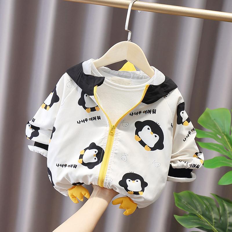 아기 소녀의 봄 후드 재킷 귀여운 작은 펭귄 소년의 캐주얼 탑 얇은 지퍼 셔츠 어린이 유행