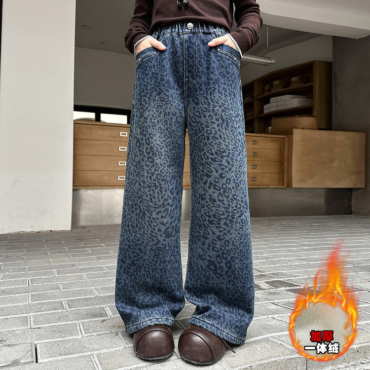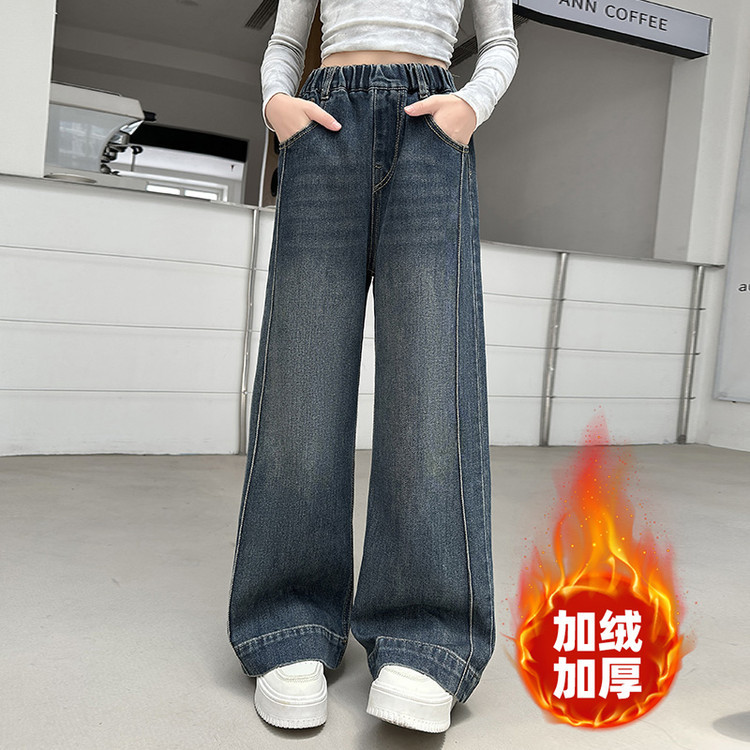 여아용 기모 데님 팬츠 가을 겨울 2025 신상 큰아이용 스타일리시 두꺼운 와이드 팬츠 여아 겨울 긴바지스토어 가기