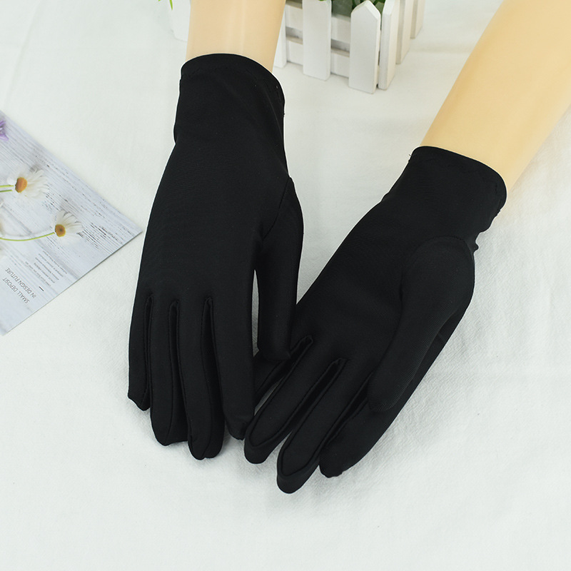 남성과 여성을위한 봄과 여름 얇은 자외선 차단제 장갑 스트레치 흑백 에티켓 댄스 성능 스판덱스 산업용 장갑