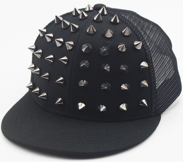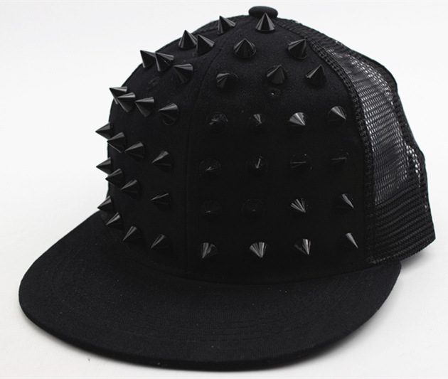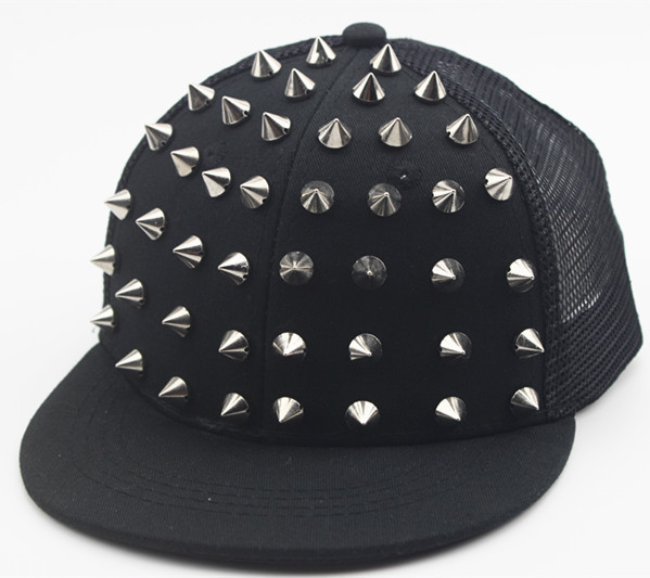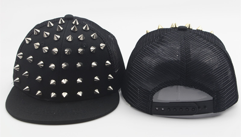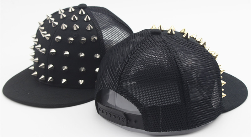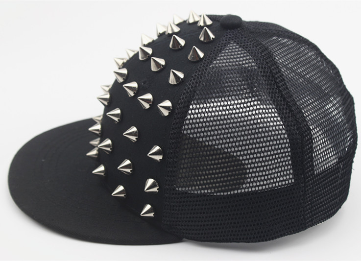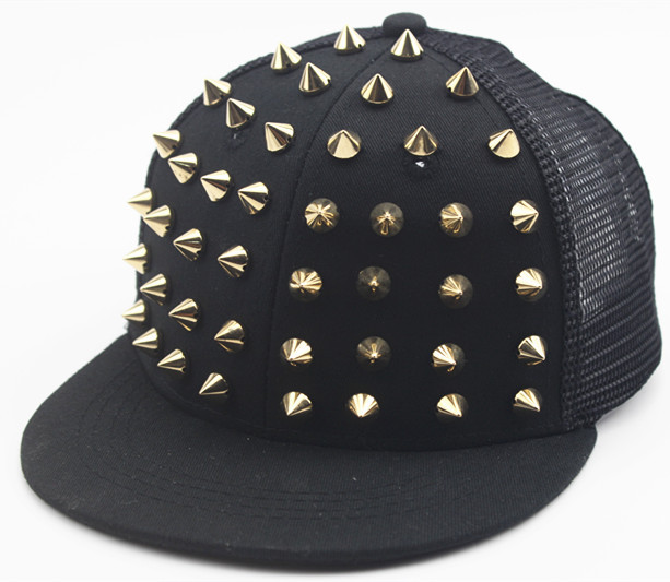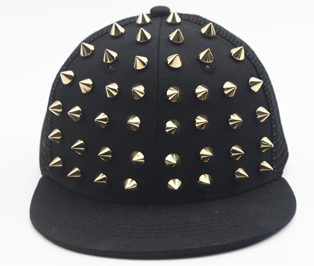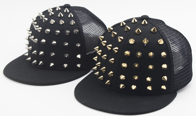 크로스 국경 유럽과 미국 모자 어린이 그물 모자 리벳 플랫 에지 야구 모자 야외 금색과 실버 네일 힙합 모자 태양 모자