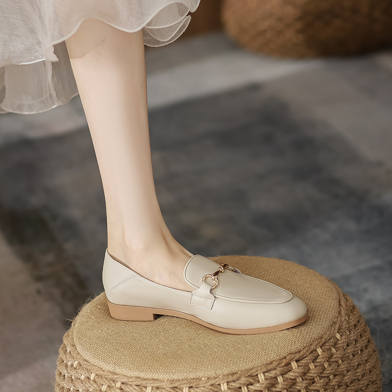 Xinyuda~여름과 가을 여성을 위한 정품 가죽 말 버클 플랫 바닥 영국식 슬립온 로퍼 작은 가죽 신발스토어 가기