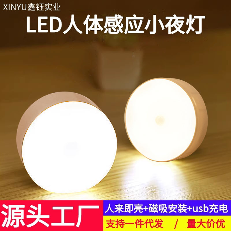 지능형 led 인체 유도 라운드 나이트 라이트 버블 충전식 계단 복도 가정용 침대 옆 자기 흡입 램프스토어 가기