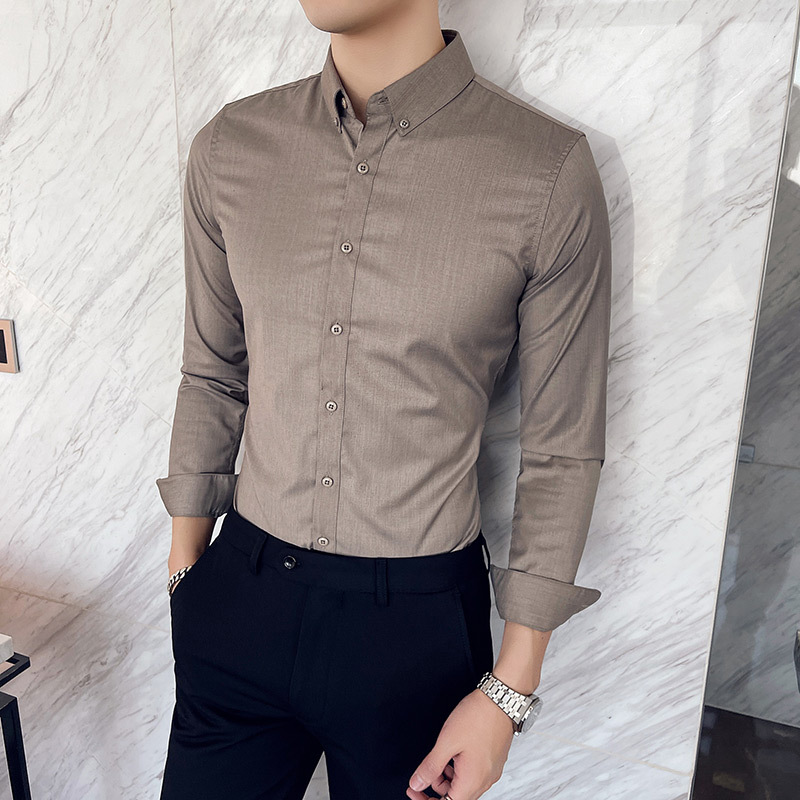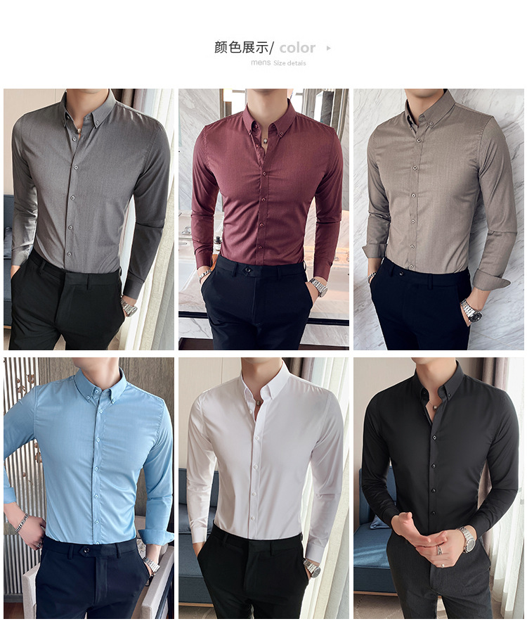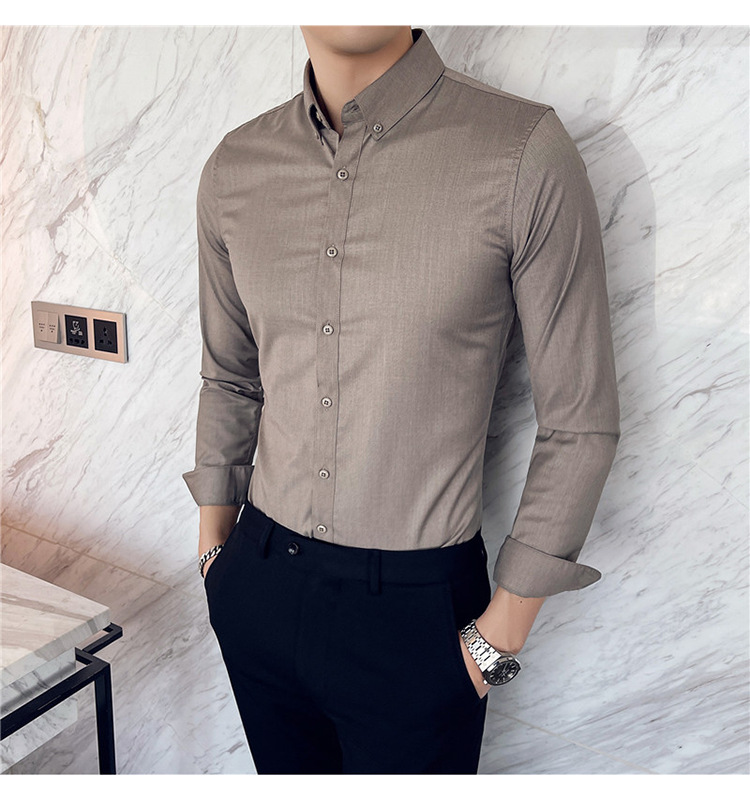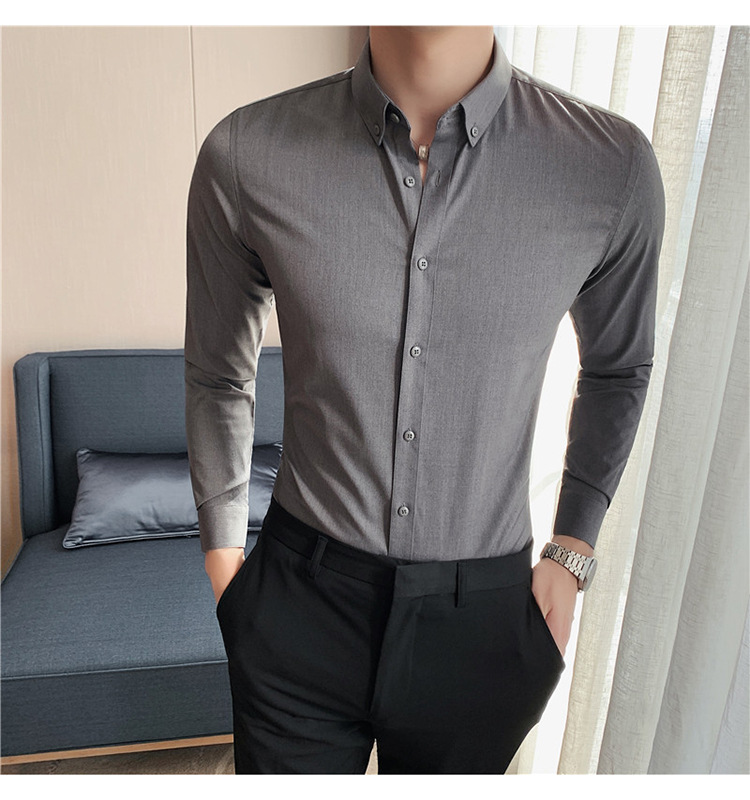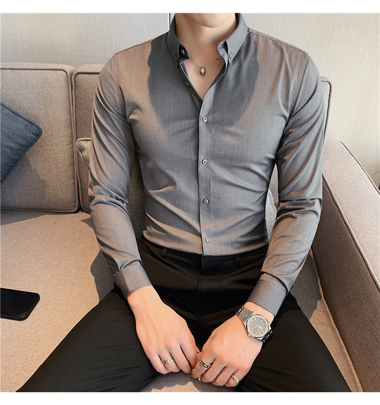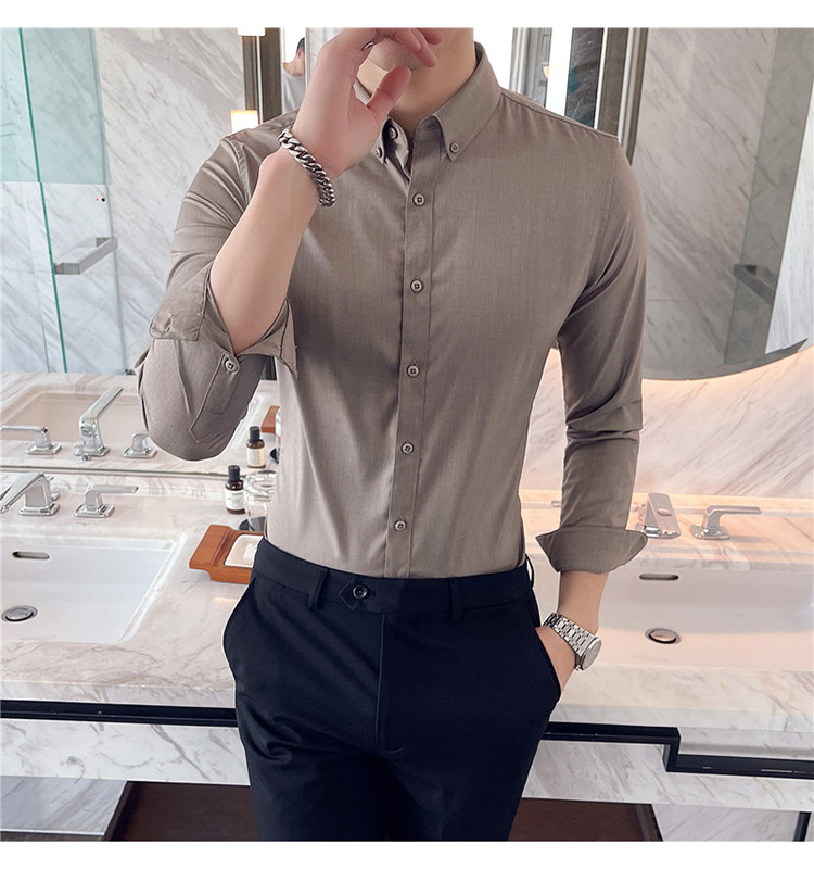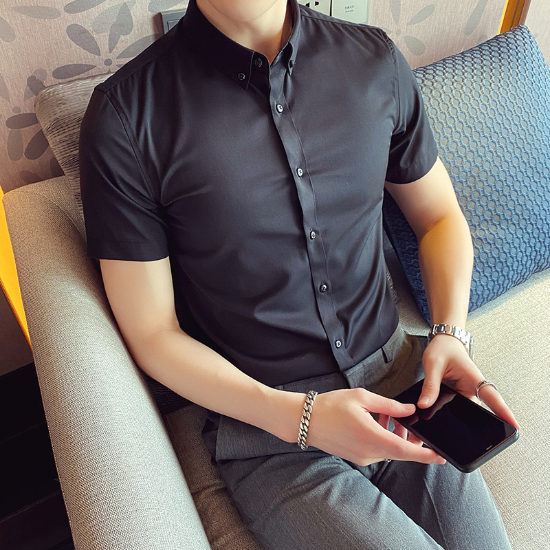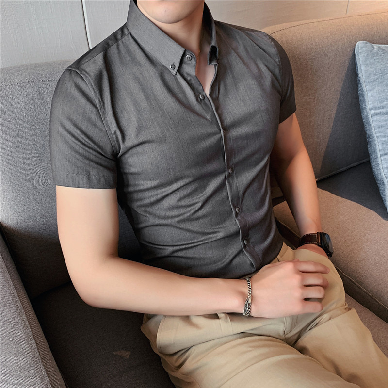 봄과 여름 남성용 긴팔 셔츠 남성 캐주얼 셔츠 반팔 슬림핏 셔츠 유행 비즈니스 비 철 셔츠 남성 스타일