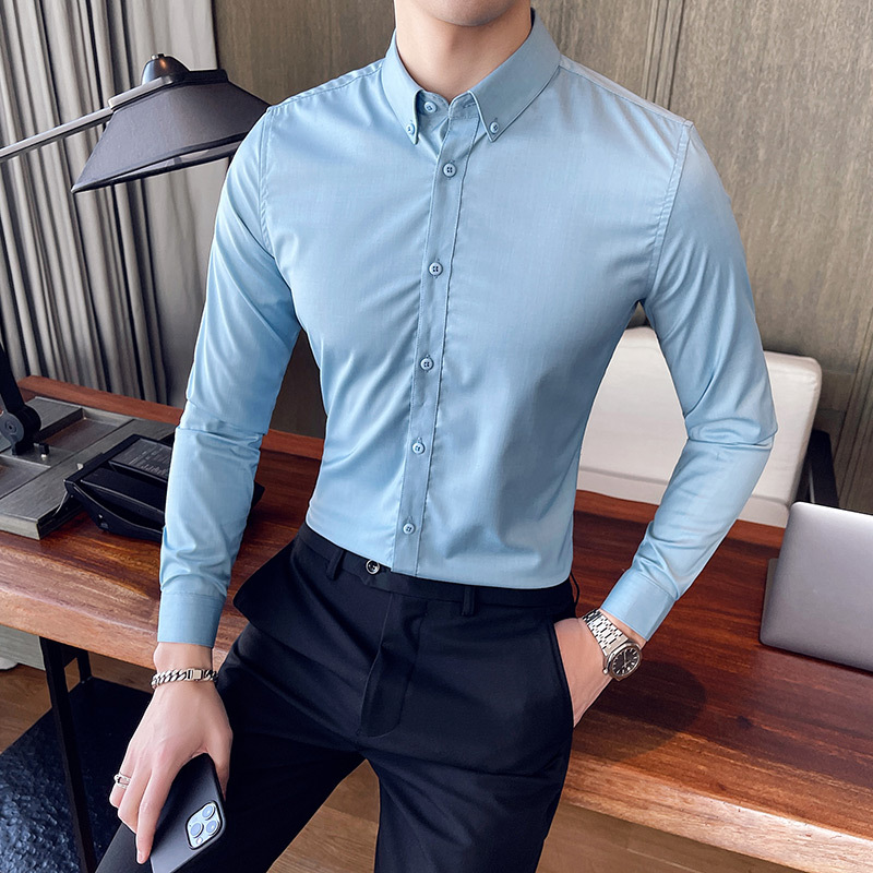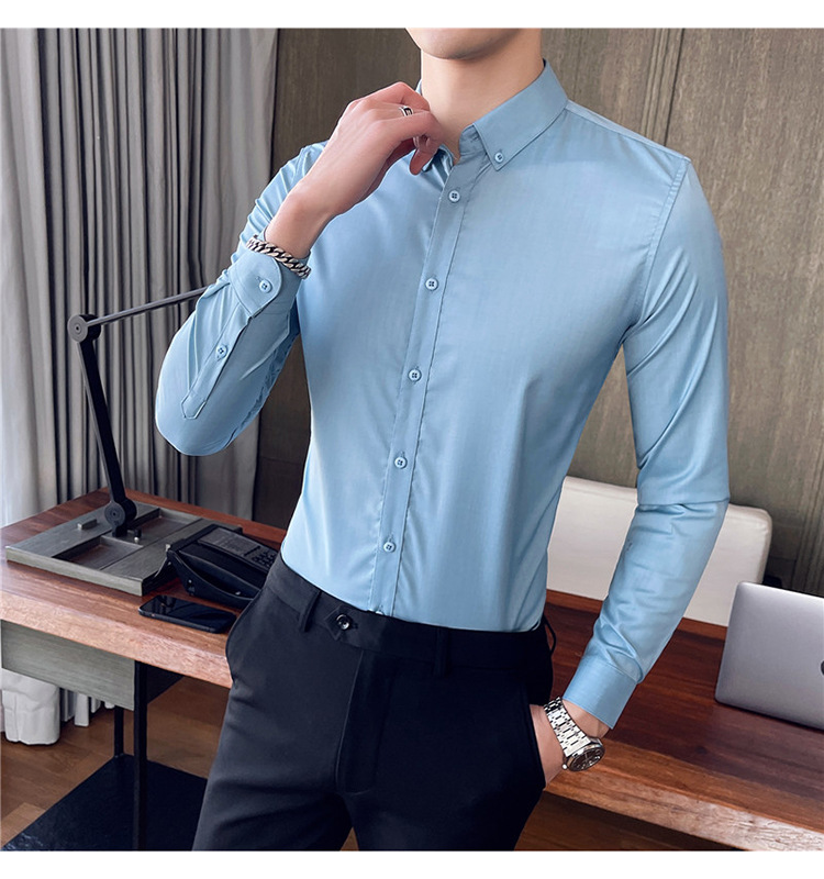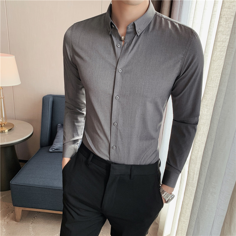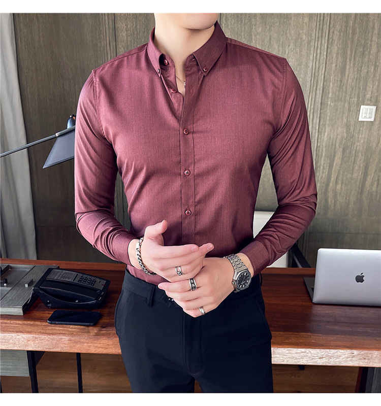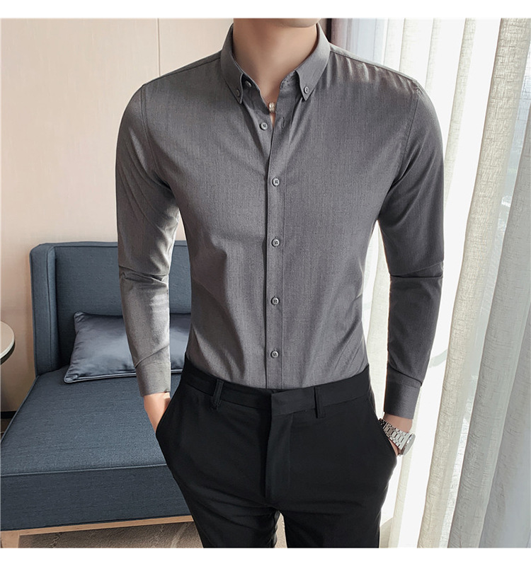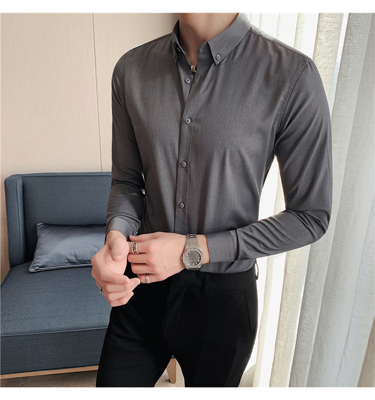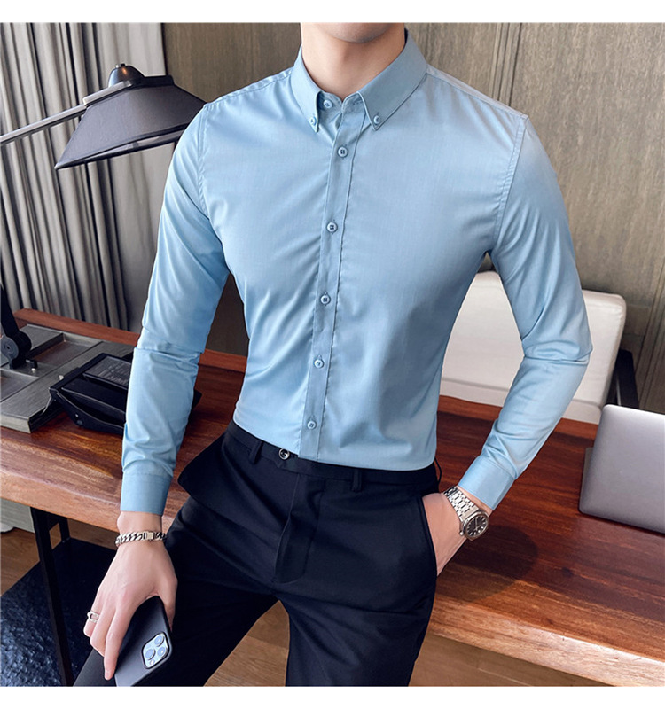봄과 여름 남성용 긴팔 셔츠 남성 캐주얼 셔츠 반팔 슬림핏 셔츠 유행 비즈니스 비 철 셔츠 남성 스타일