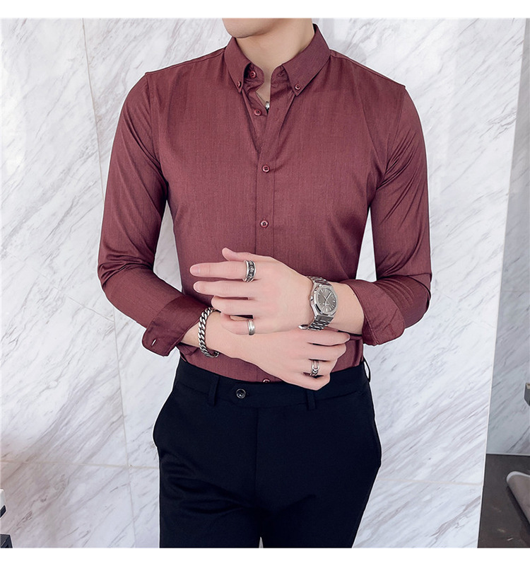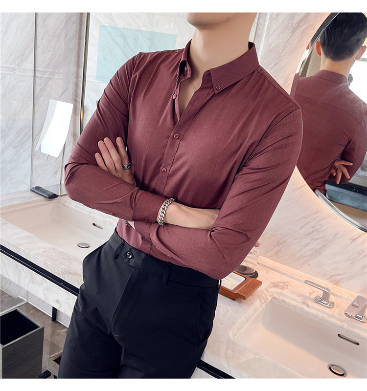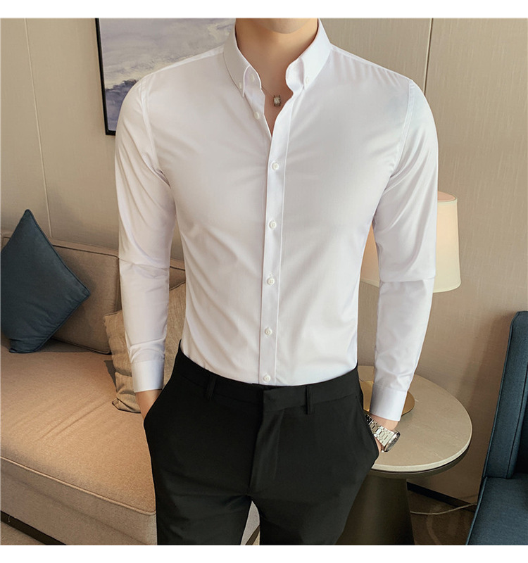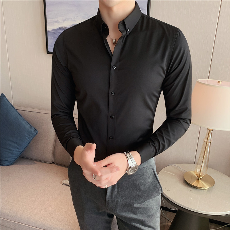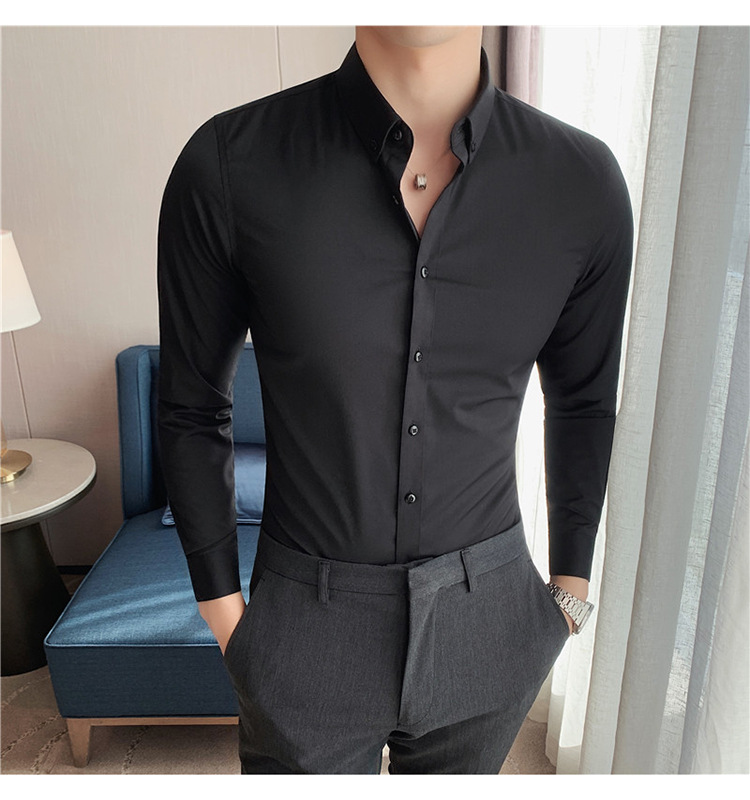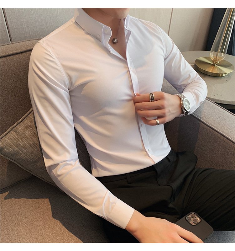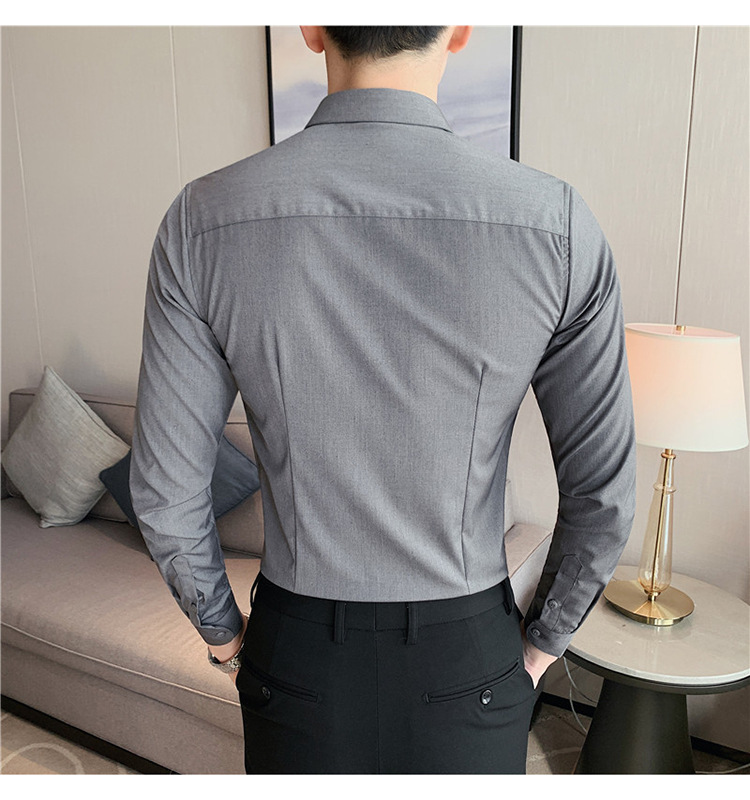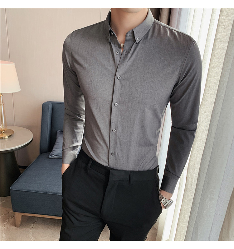 봄과 여름 남성용 긴팔 셔츠 남성 캐주얼 셔츠 반팔 슬림핏 셔츠 유행 비즈니스 비 철 셔츠 남성 스타일