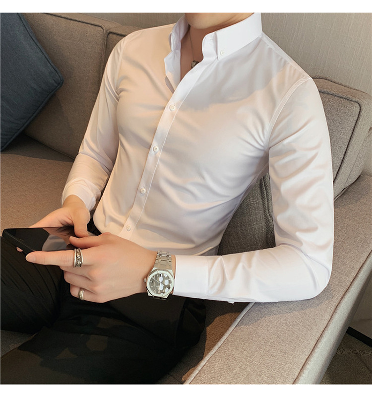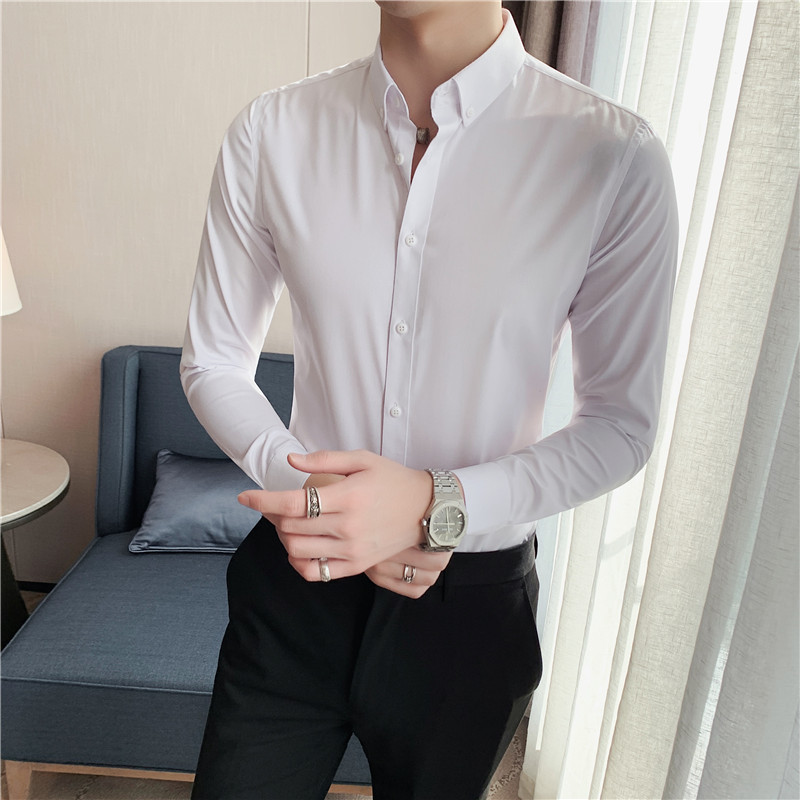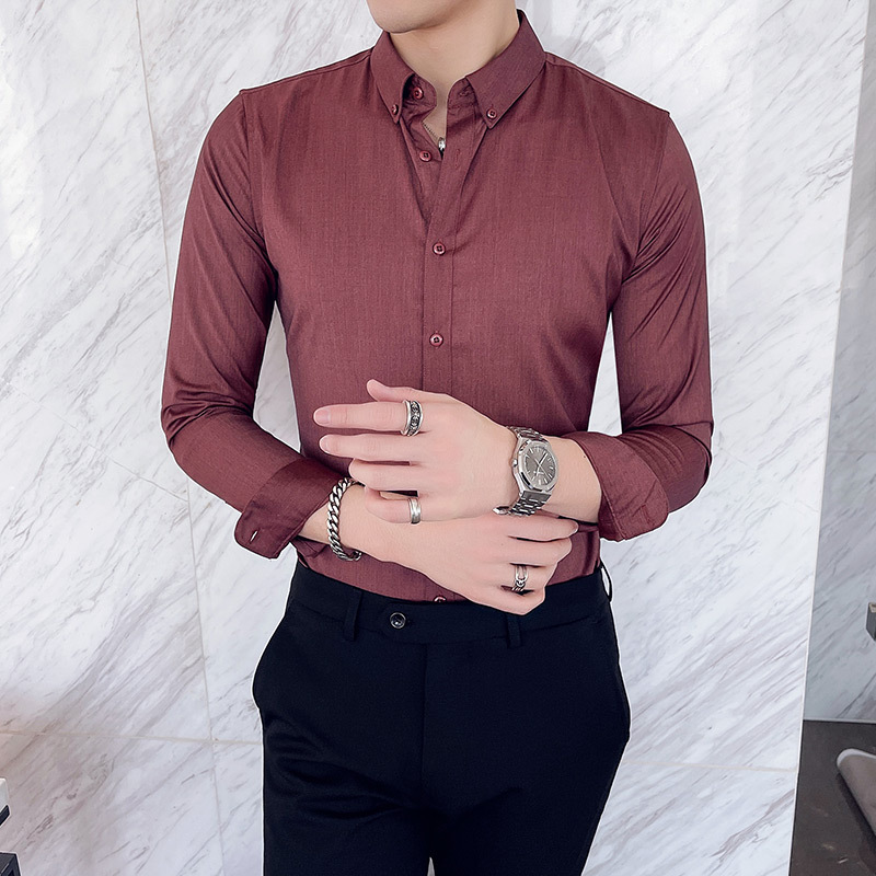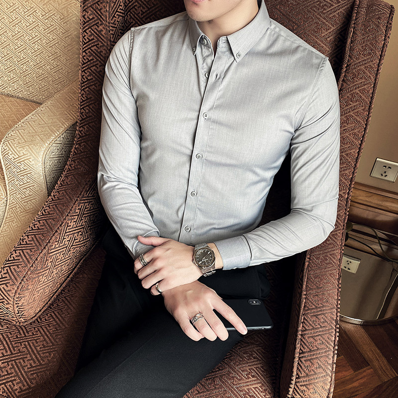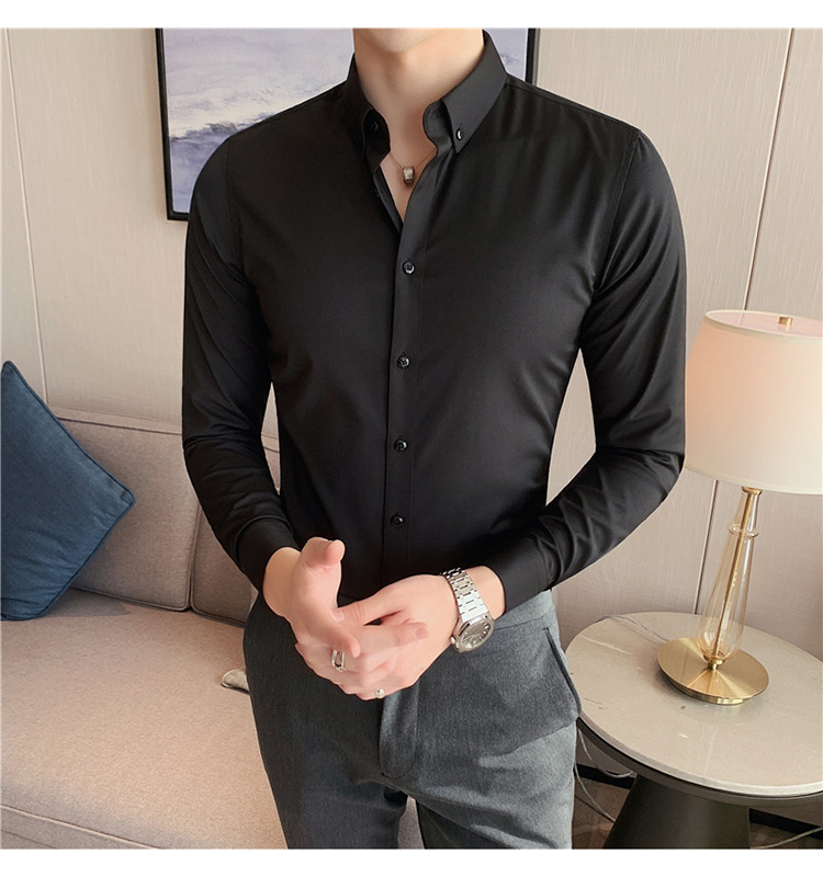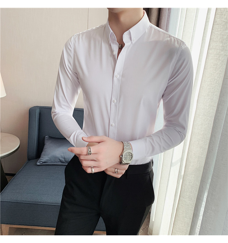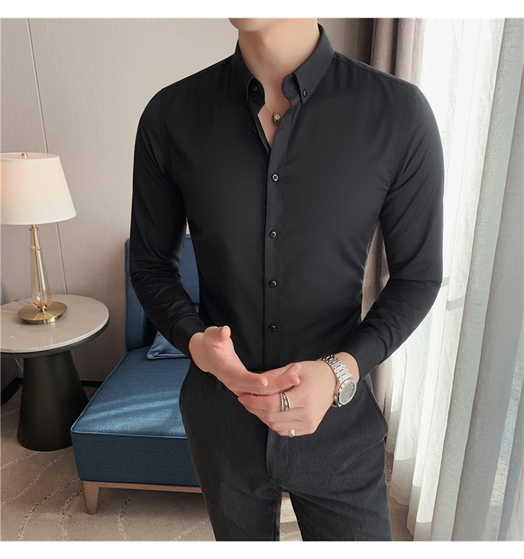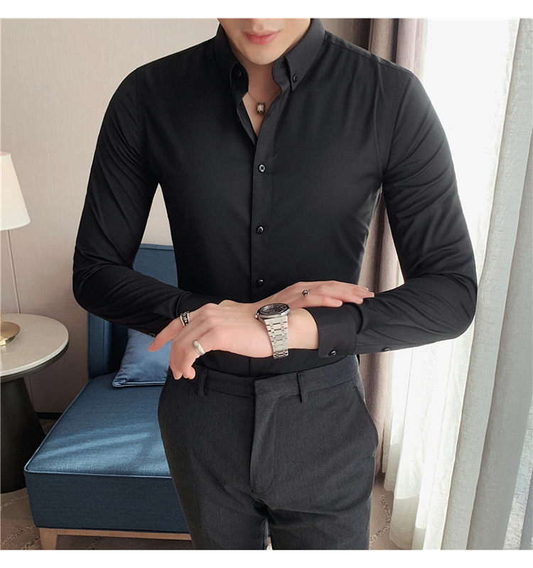 봄과 여름 남성용 긴팔 셔츠 남성 캐주얼 셔츠 반팔 슬림핏 셔츠 유행 비즈니스 비 철 셔츠 남성 스타일