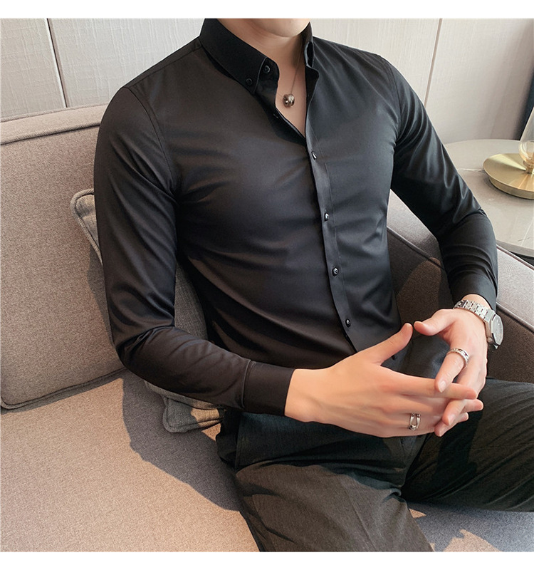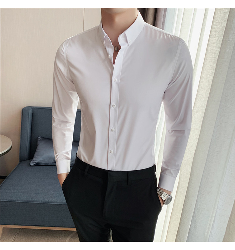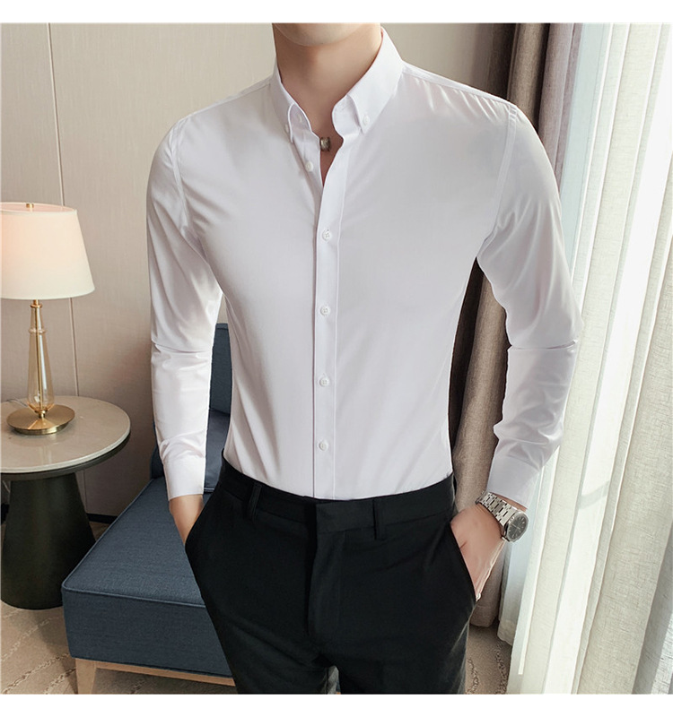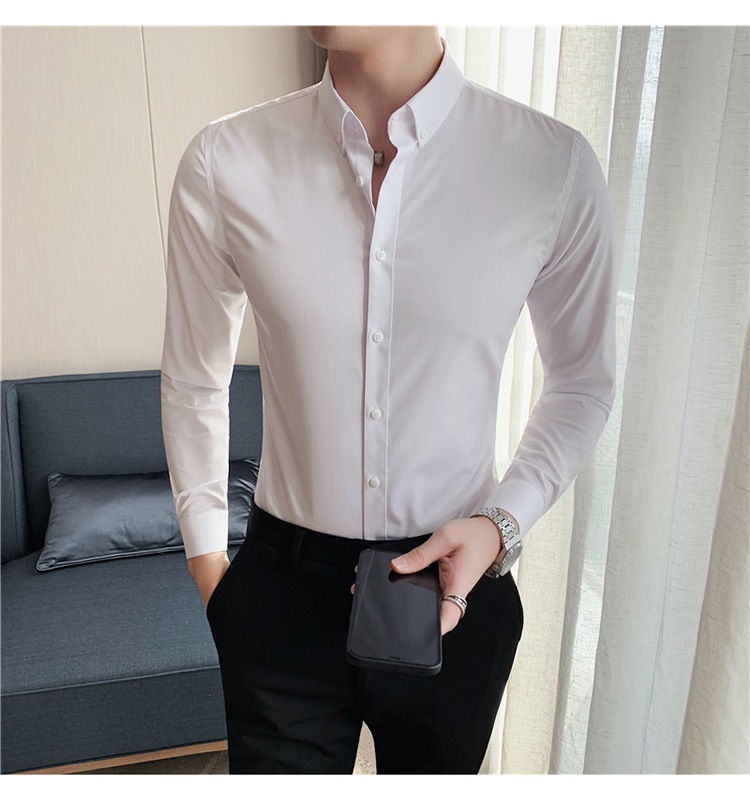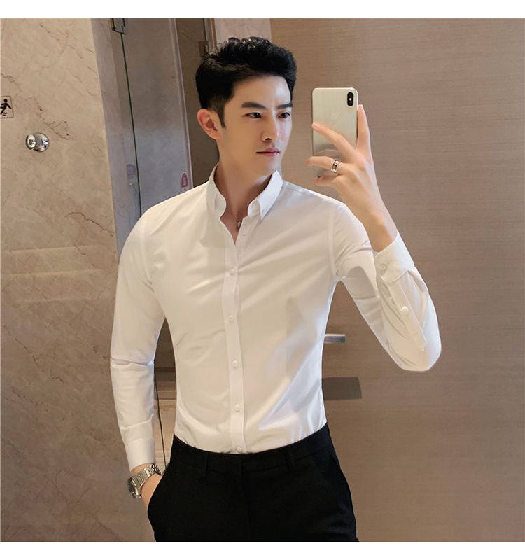 봄과 여름 남성용 긴팔 셔츠 남성 캐주얼 셔츠 반팔 슬림핏 셔츠 유행 비즈니스 비 철 셔츠 남성 스타일스토어 가기