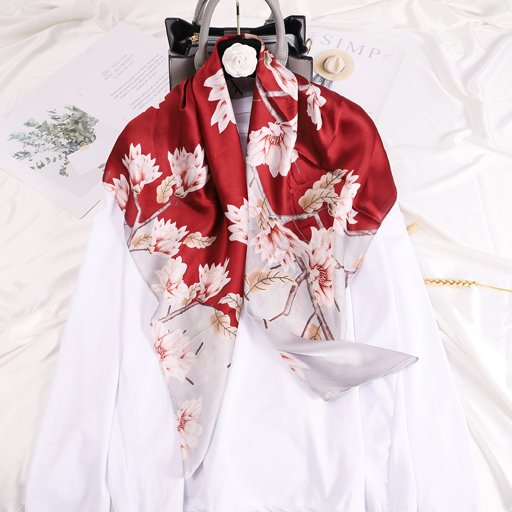 쑤저우 및 항저우 실크 스카프 녹색 꽃과 새 인쇄 실크 스카프 여성용 TikTok 어머니 실크 스카프 90cm 대형 사각 스카프 여행 숄스토어 가기