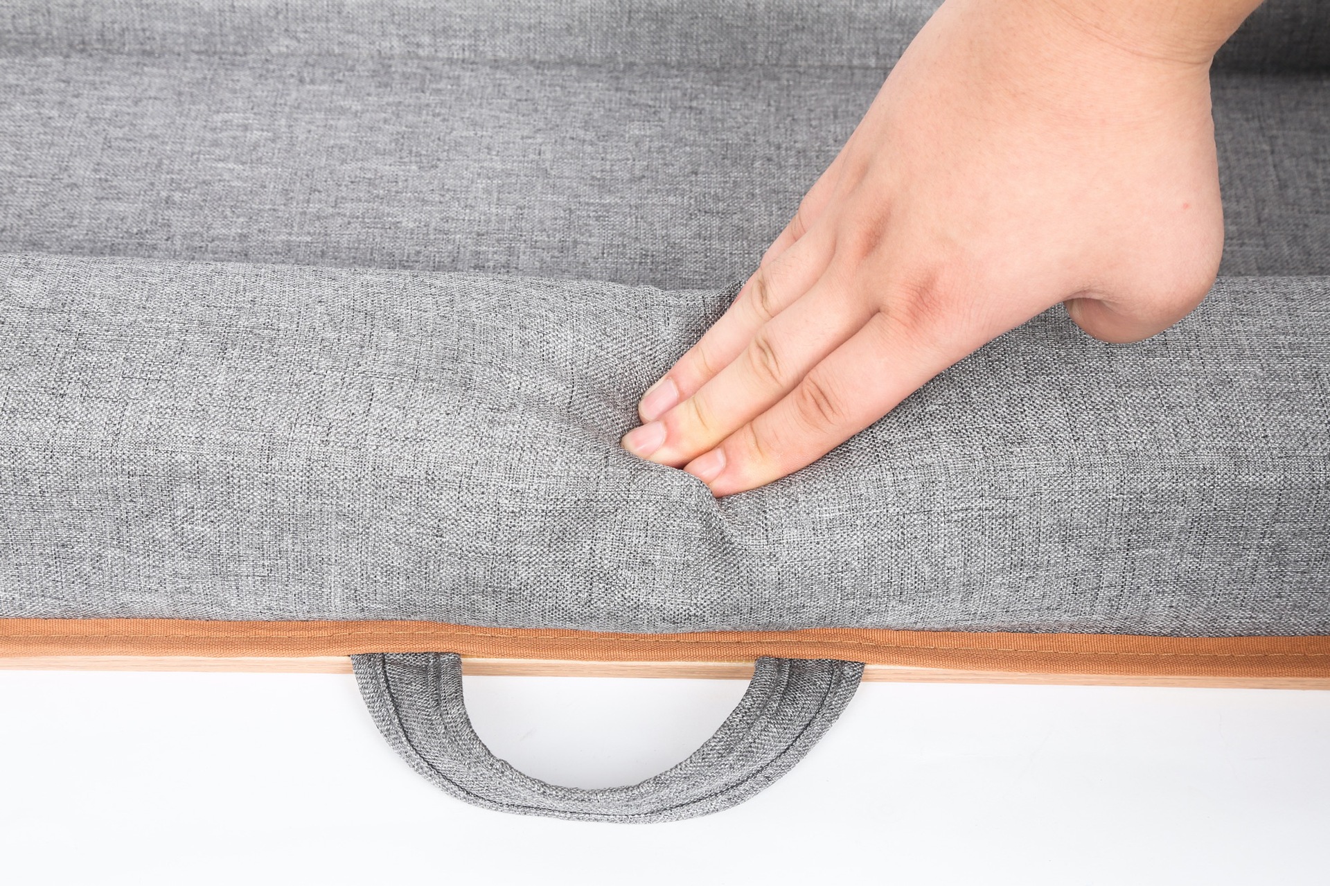 产品材质:多层实木板、高密度海棉、ABS塑胶、仿麻布