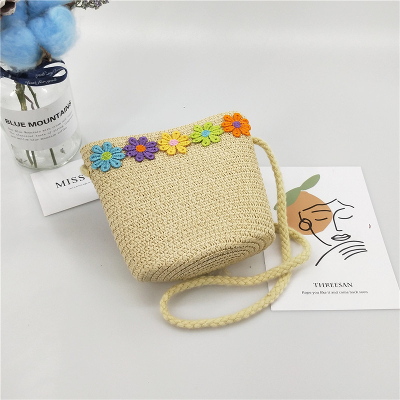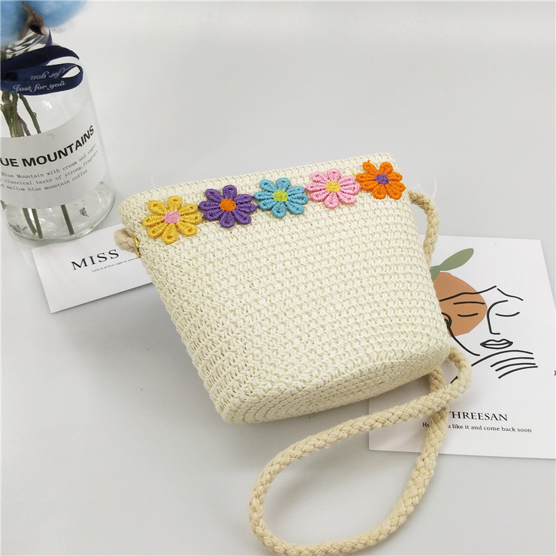 女童斜挎包2021新款单肩包小雏菊零钱包卡通公主小包包儿童草编包