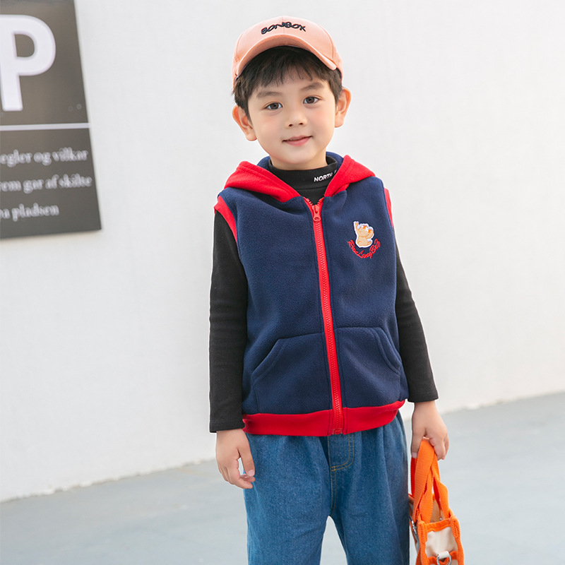 어린이 조끼 아기 따뜻한 새로운 봄과 가을 바닥 민소매 겉옷 조끼 소년과 소녀를위한 유행 모자 조끼스토어 가기