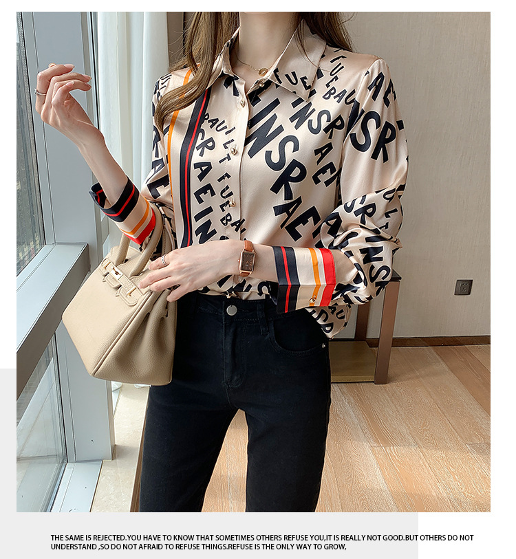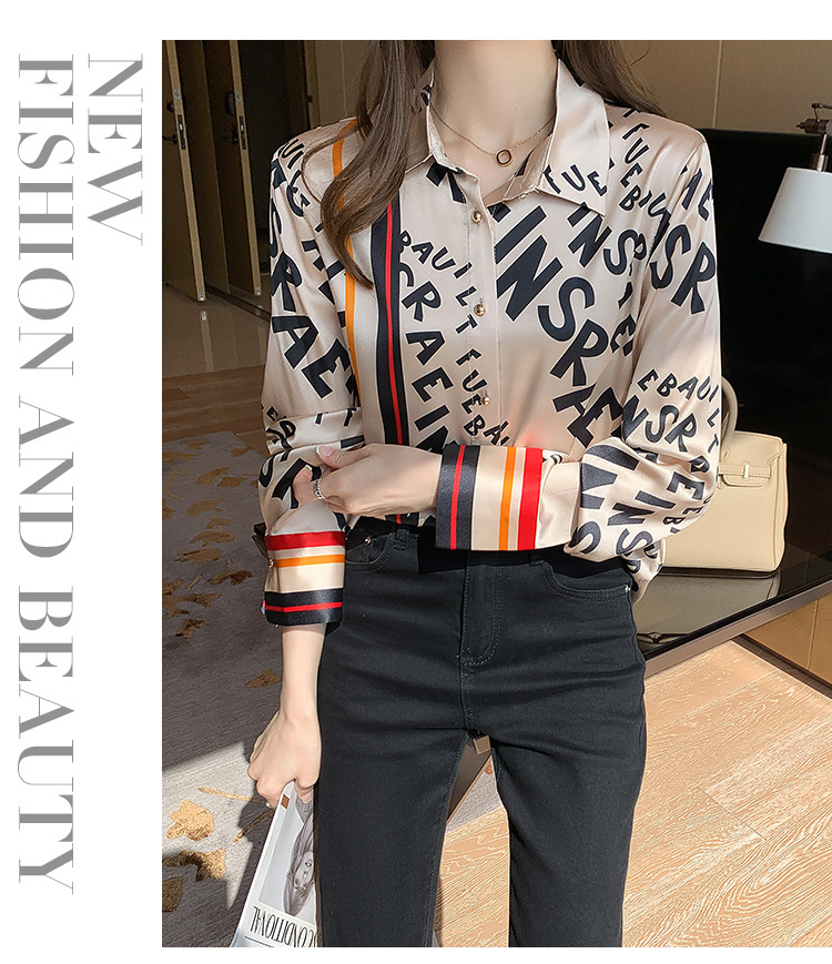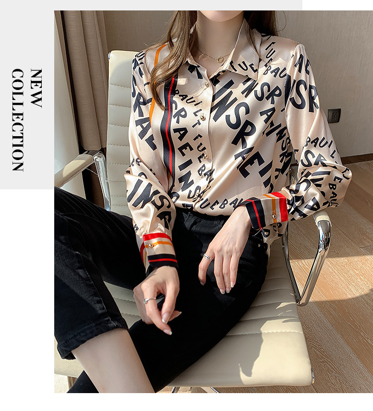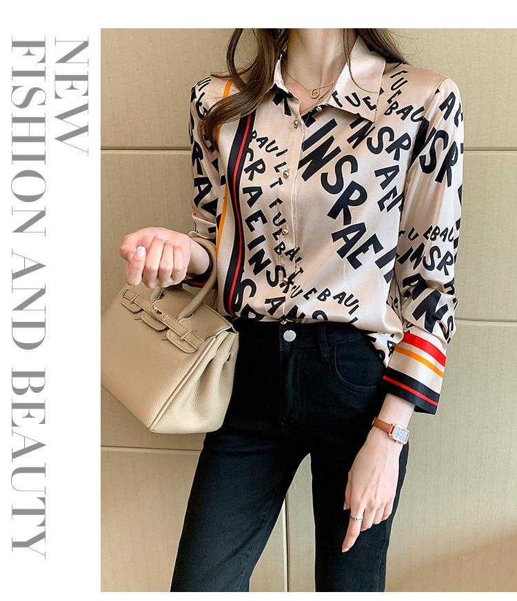 패션 레터 프린트 셔츠 2022 봄 여름 AliExpress 아마존 긴 소매 라펠 캐주얼 탑스토어 가기